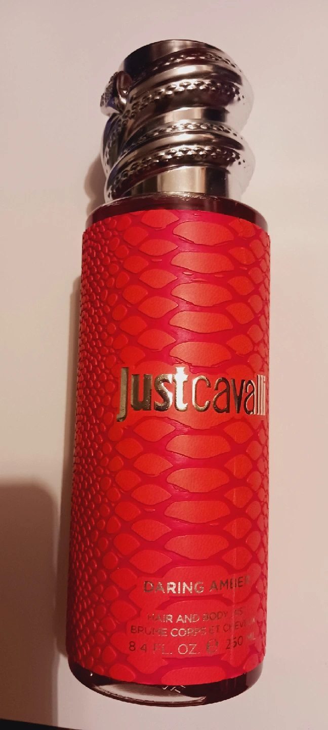 1000+New !!! Selling a bottle of Authentic ROBERTO CAVALLI JUST CAVALLI Daring Amber Hair and Body Mist. It's 8.4 fl oz (250 mL). The bottle has a unique design and the scent is lovely !! New !!! ALL MY PRICES ARE NEGOTIABLE !!