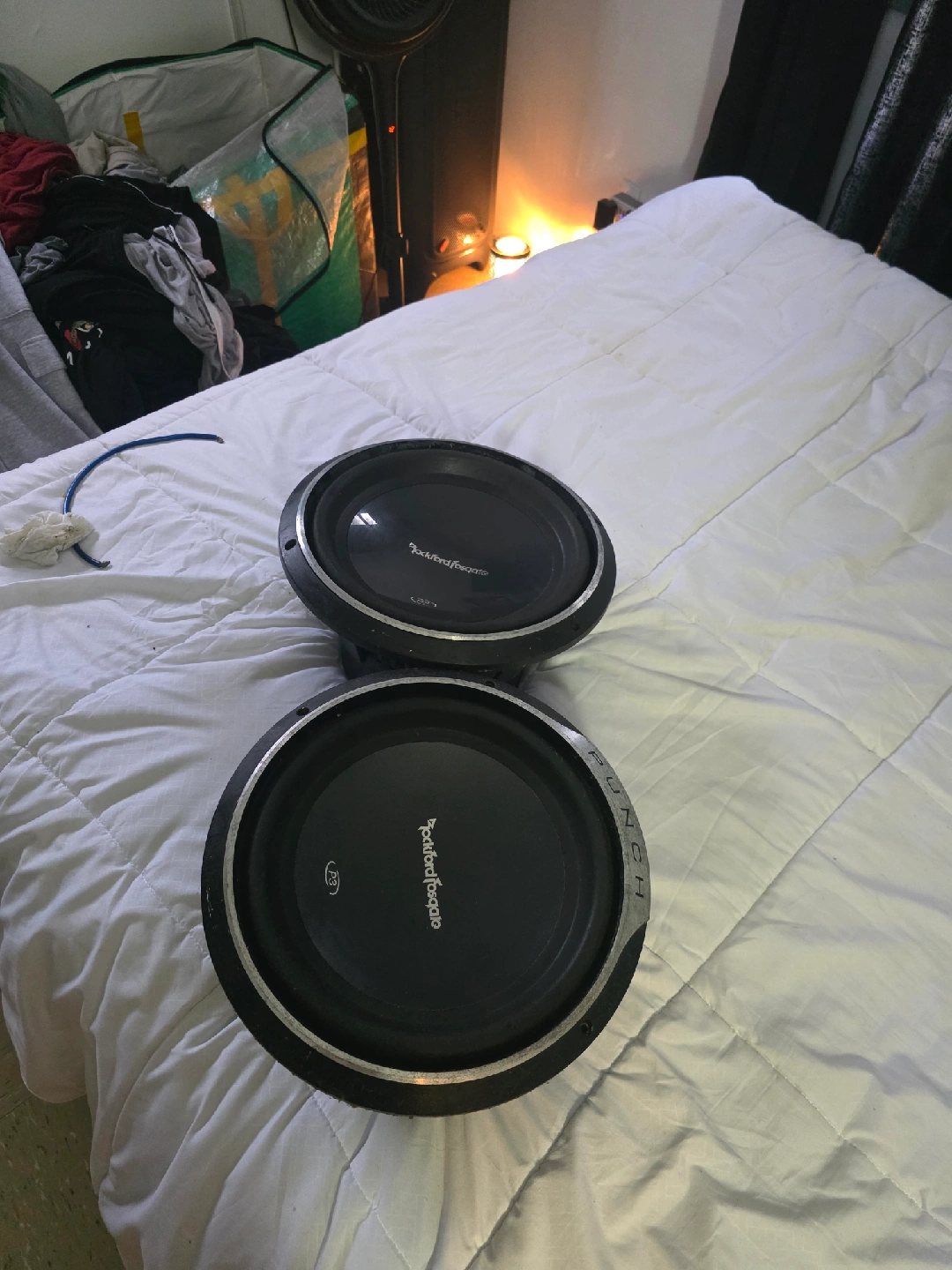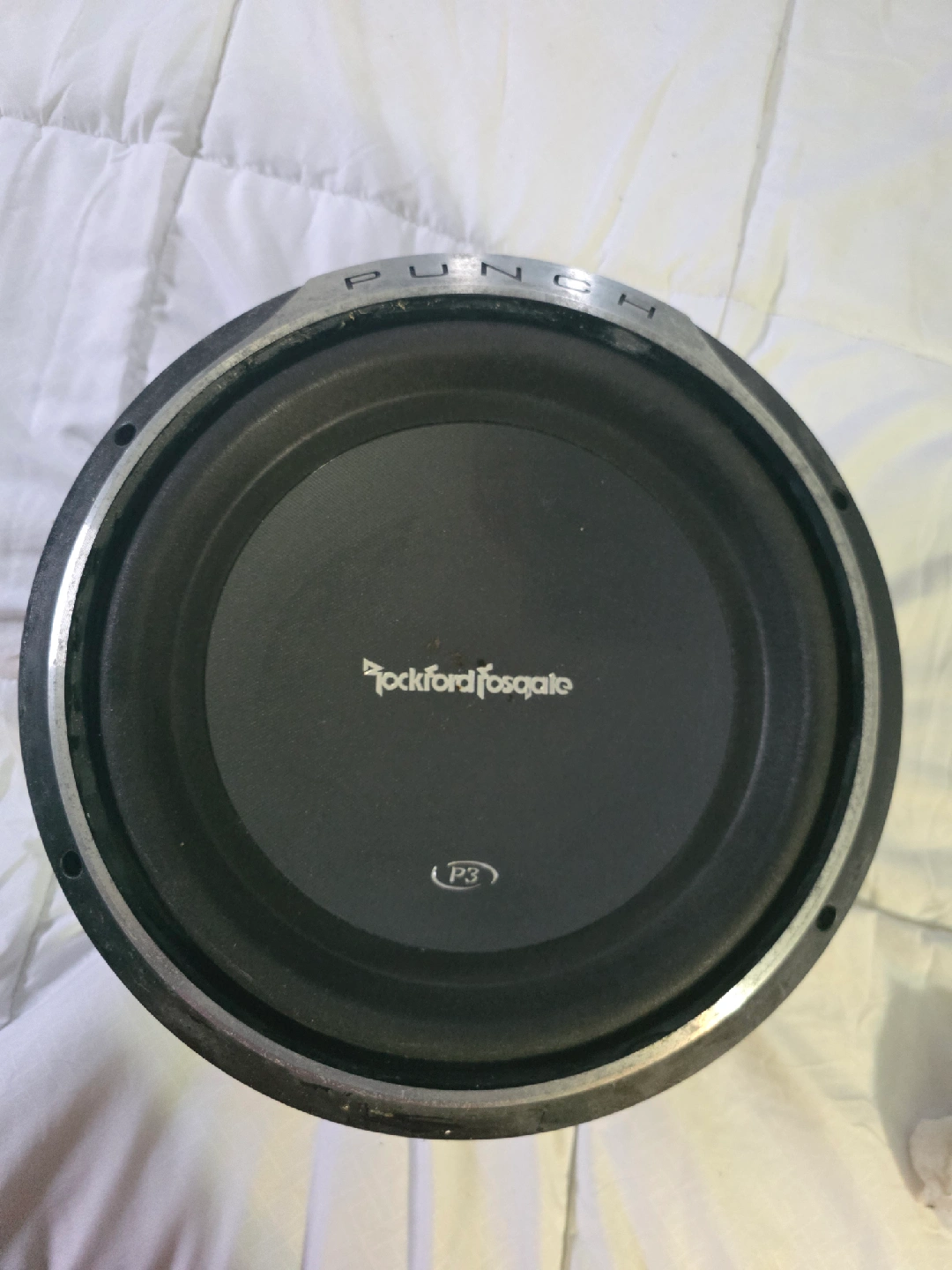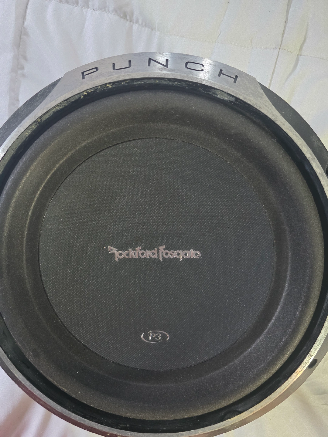 Selling a Rockford Fosgate Punch P3 subwoofer. It's a 12-inch subwoofer with a dual 4-ohm voice coil. It can handle 500 Watts RMS and 1000 Watts peak. Great for adding some serious bass to your car audio system!