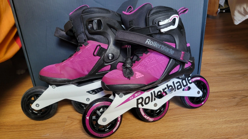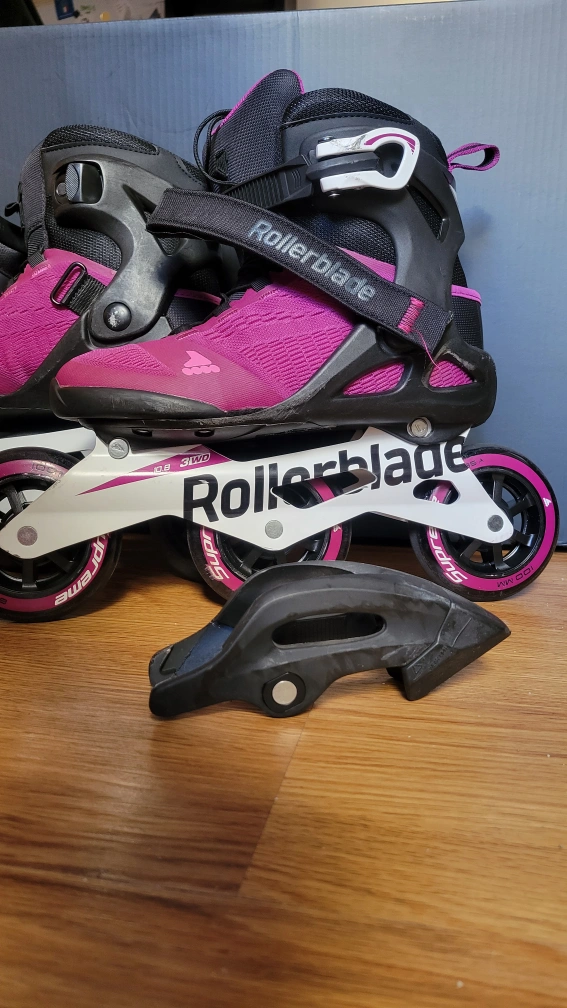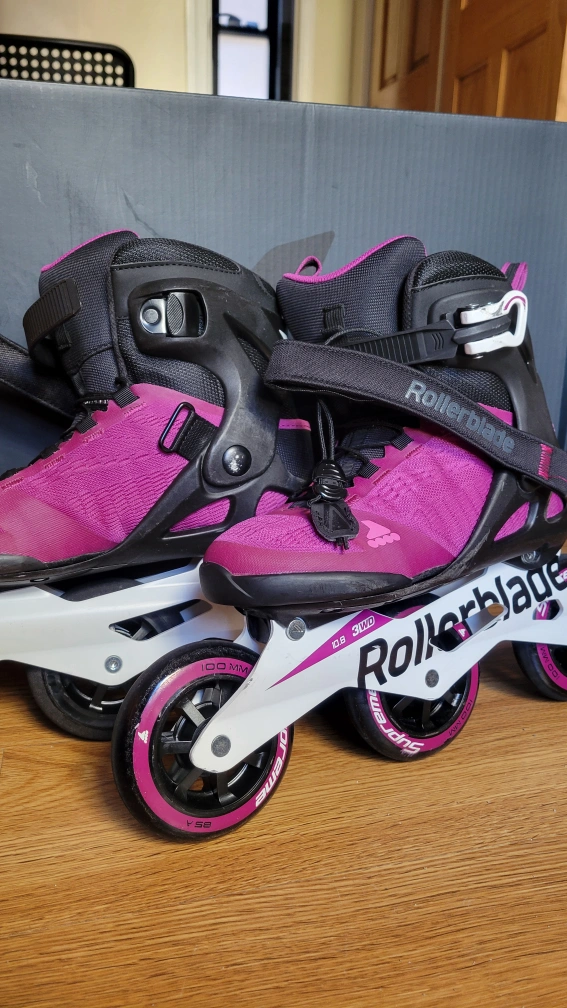 83Pink and black inline skates, 3WD, size 7, women's. Includes original box, Bristol Key Wrench, and Heel Brake. *** Gently used *** (Originally purchased for $230) SIZE: 7 US (24cm) WHEELS: Supreme 100mm/85A FRAME: Twinblade Aluminum (max 100mm) Sturdy 274mm/10.8" BEARINGS: SG9