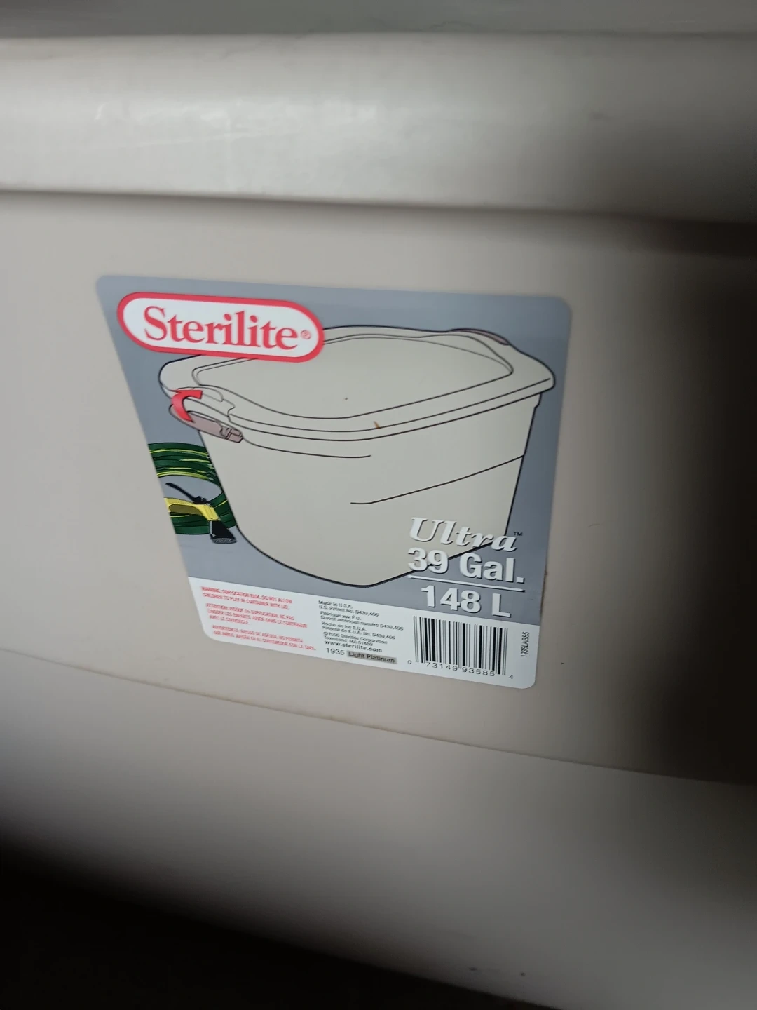 Selling a Sterilite Ultra storage box! It's a spacious 39-gallon container, perfect for storing all sorts of items. It's in good condition and ready to help you get organized.