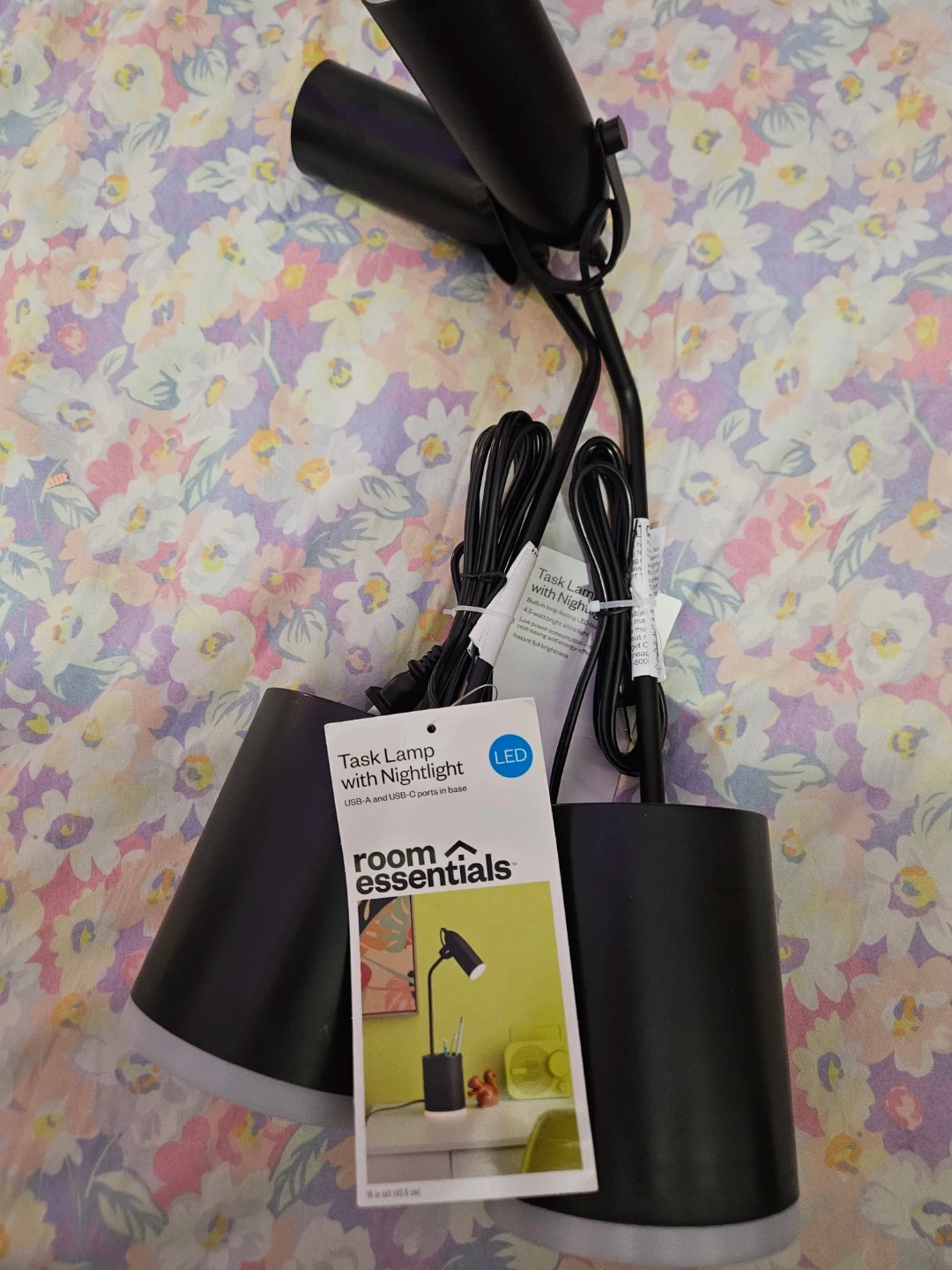 87Selling a set of Room Essentials task lamp with nightlight in black. It features LED lighting and a USB-A and USB-C port for convenience. Great for a desk or bedside table! PICK UP ONLY