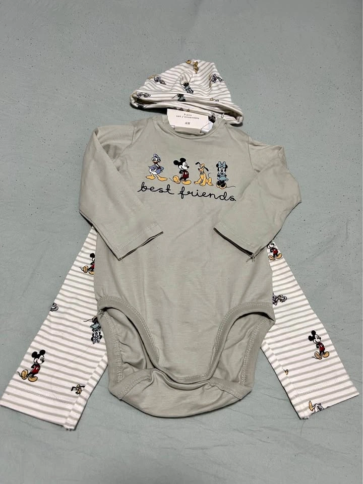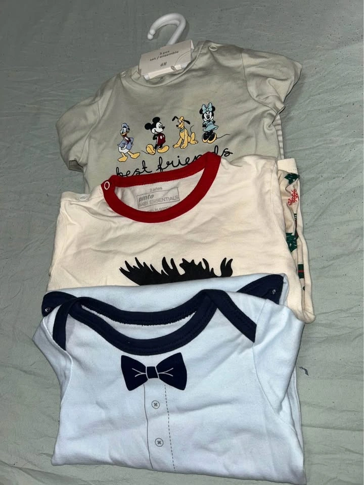20Pijama de Reno para 2 años (Marca PINTO ) Set de Mickey mousse de 3 piezas de 6 a 9 meses Set de 2 piezas de 9 a 12 meses Todo Nuevo por $25