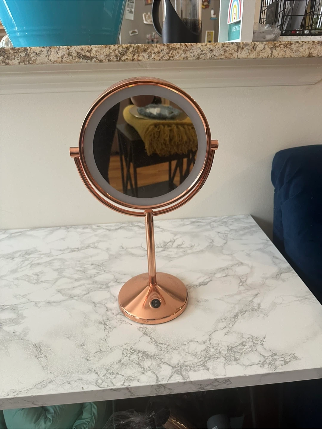 Selling a lovely rose gold DOUBLE SIDED lighted mirror! It would look great on any table or countertop to add a touch of elegance to your space. In excellent condition & pick up in Astoria.