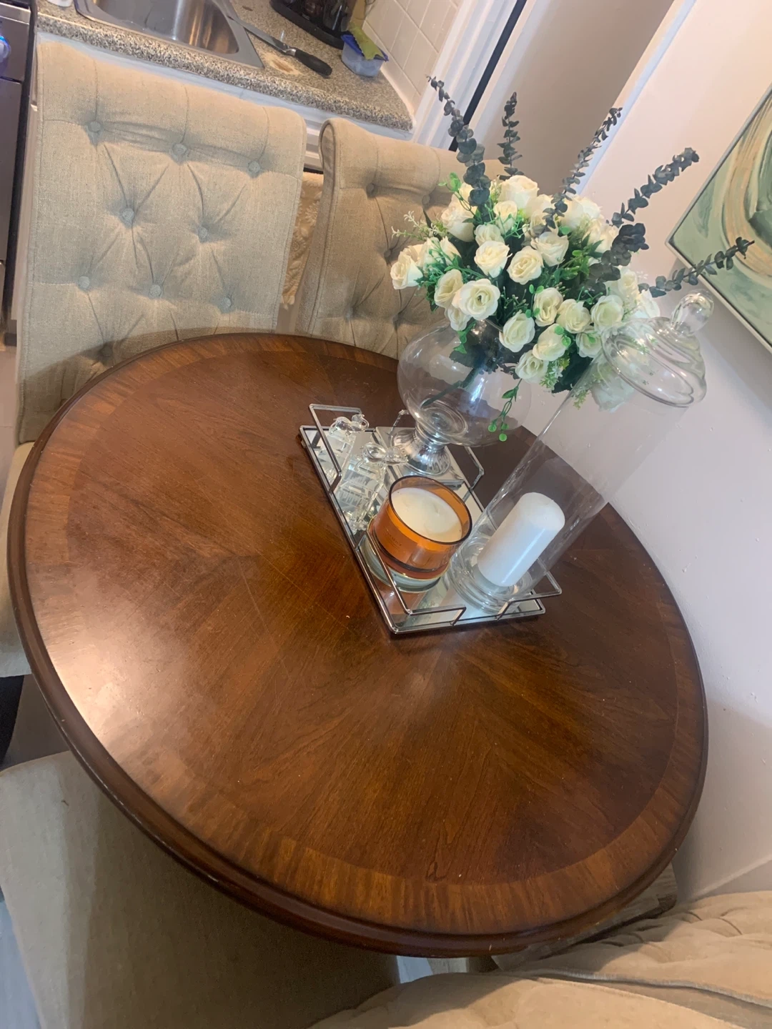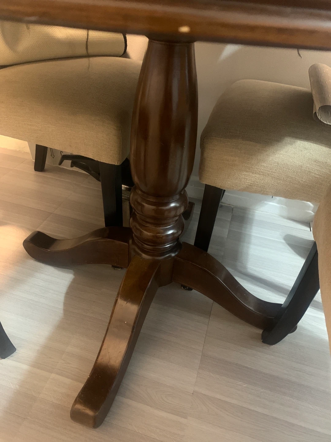 10Selling a round wooden dining table. It's a beautiful piece that would look great in any dining room or kitchen.