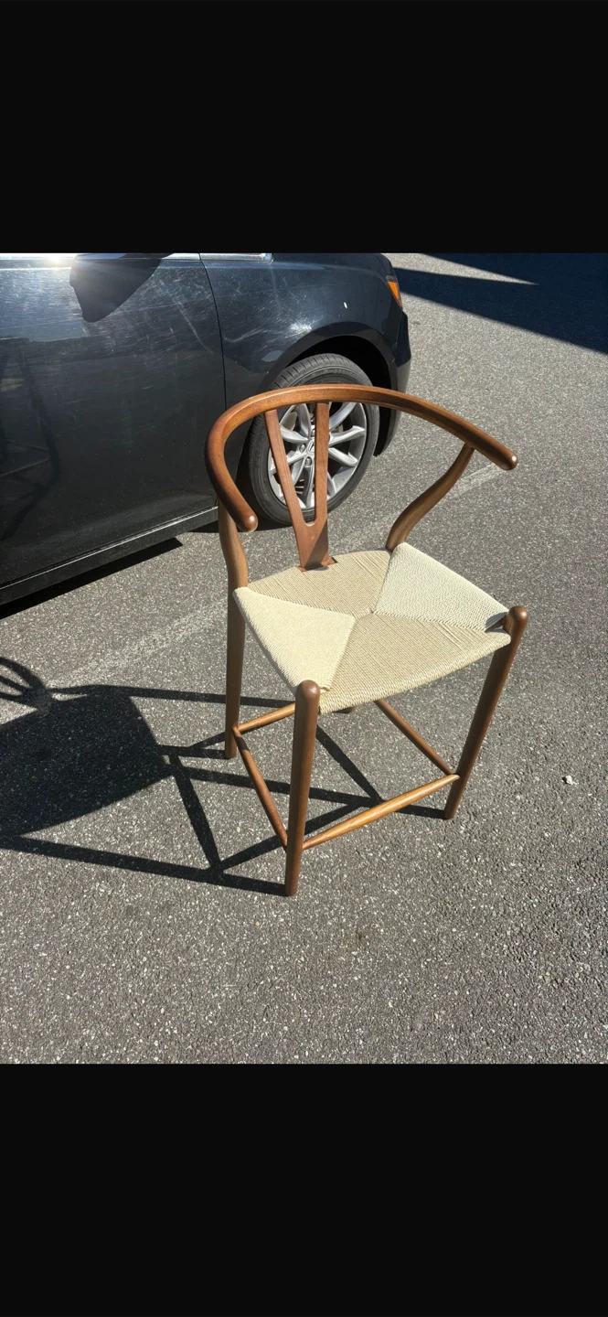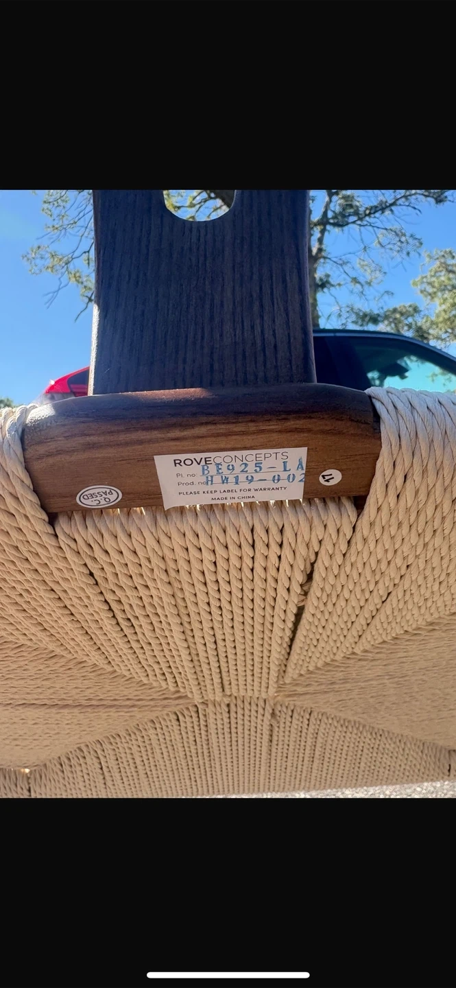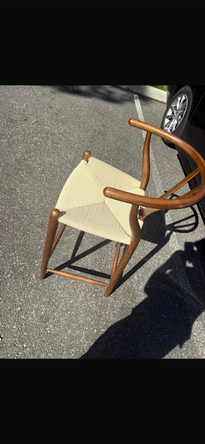 13Selling a Rove Concepts Wishbone dining chair. The chair features a woven seat and a curved backrest, offering both comfort and style. It's a beautiful piece that would complement any dining space!