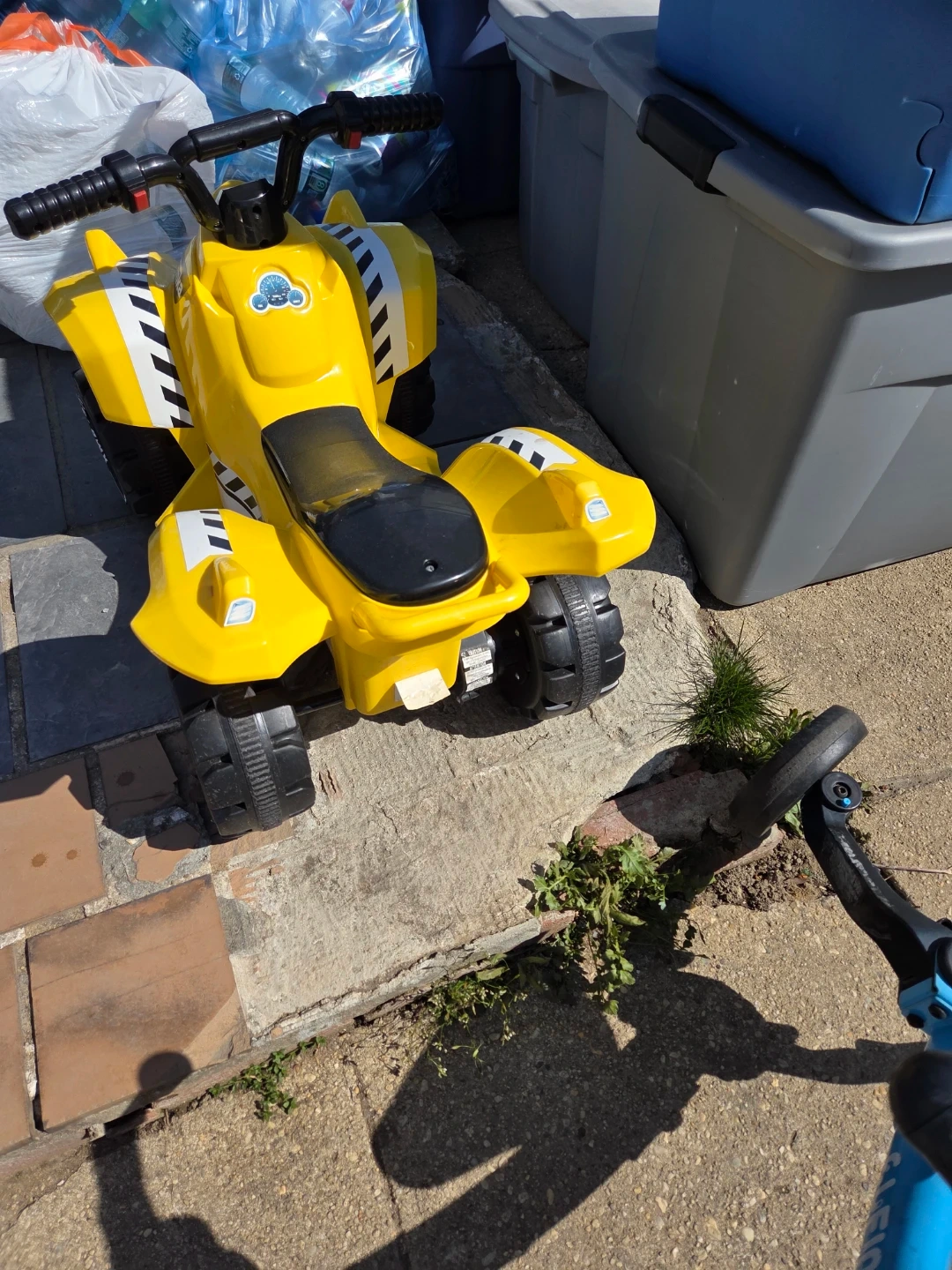 This is a bright yellow Tonka ride-on ATV. It's designed for young children to enjoy outdoor play. Durable plastic construction. Perfect for toddlers who love to pretend they're driving!