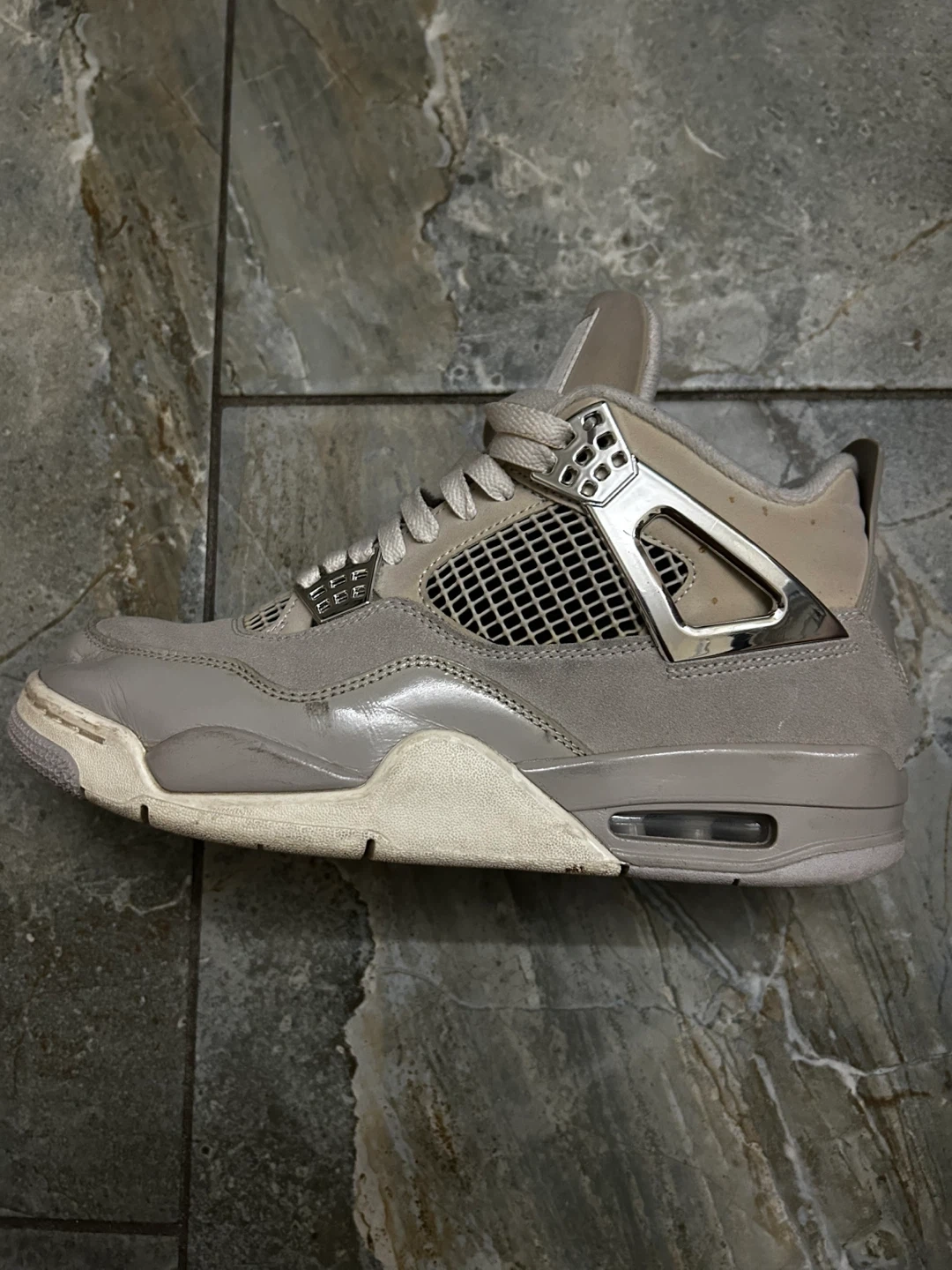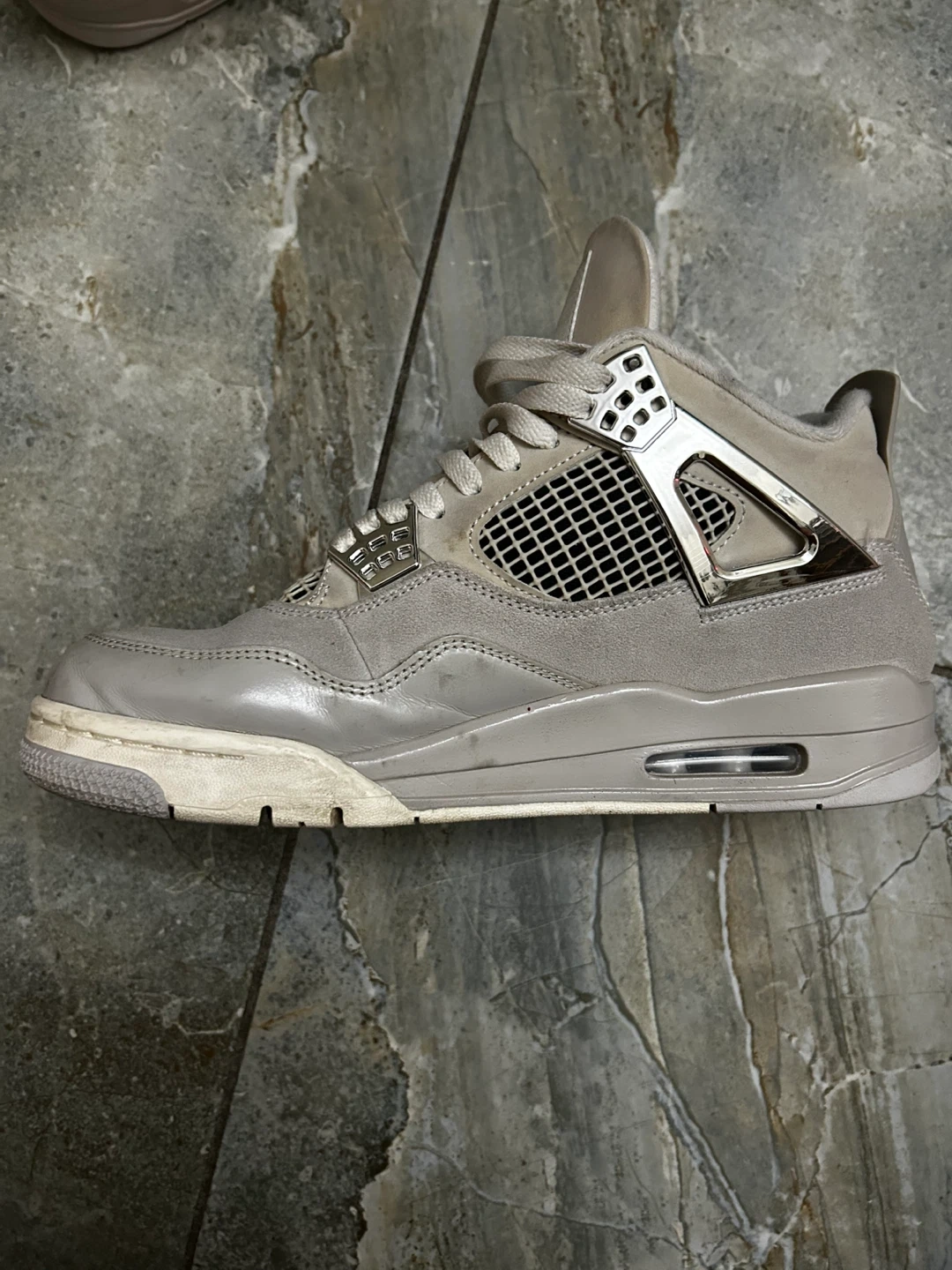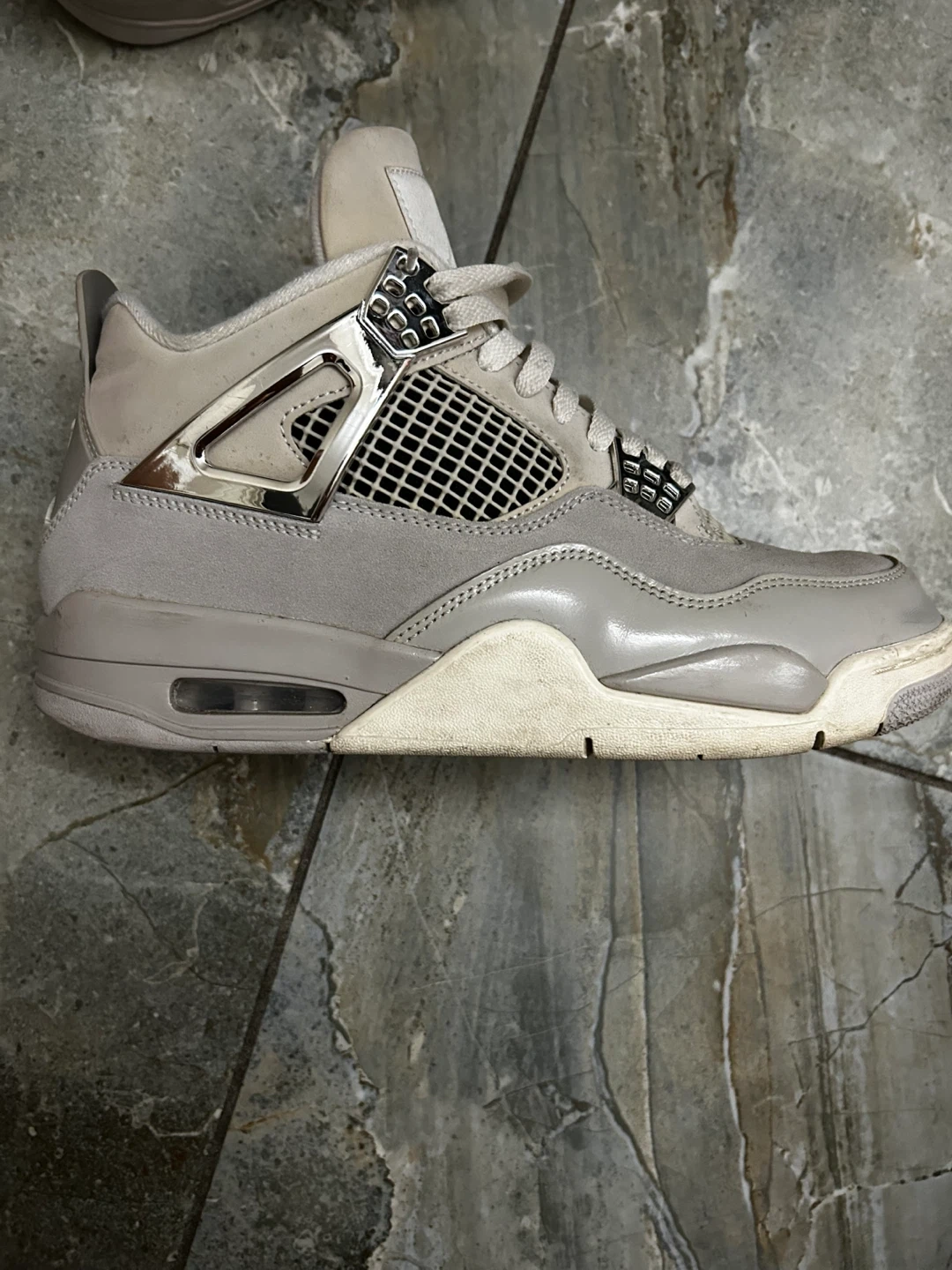 Selling a pair of Jordan 4 Retro in Metallic Silver. These are in used condition, as you can see from the photos. They are a size 10.