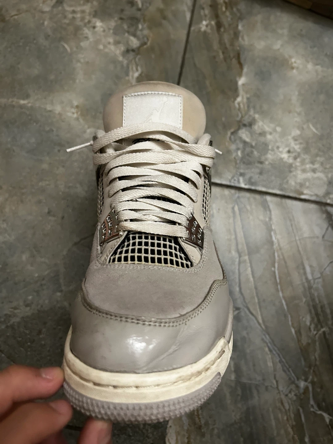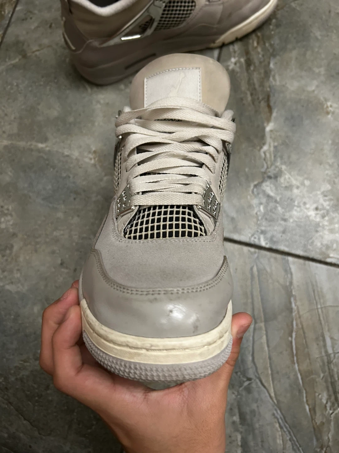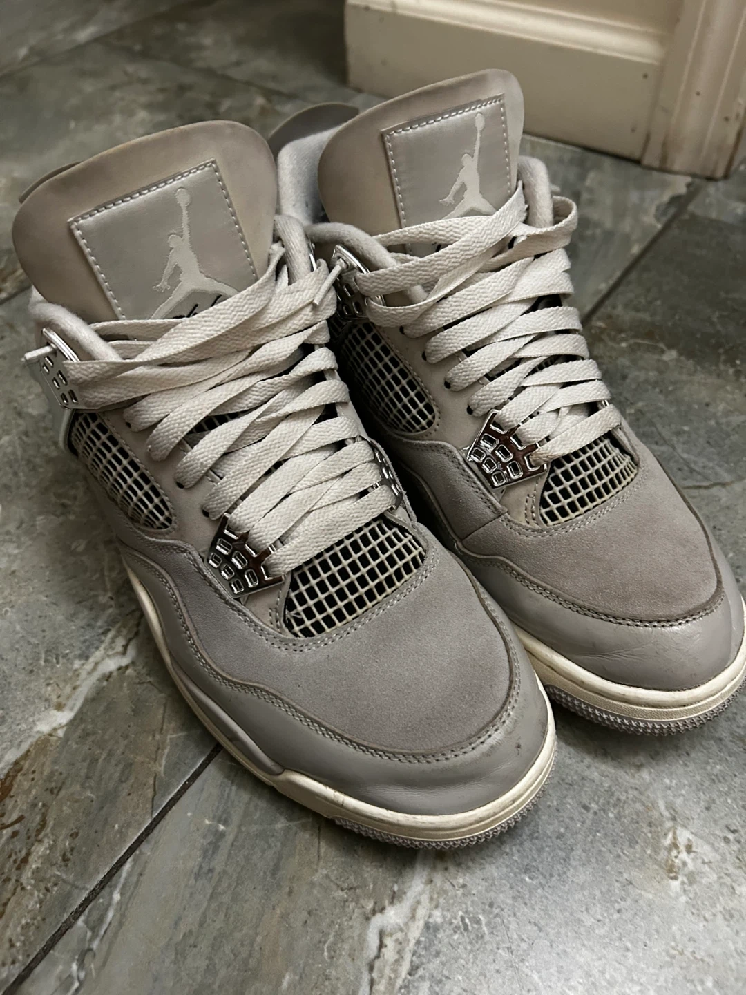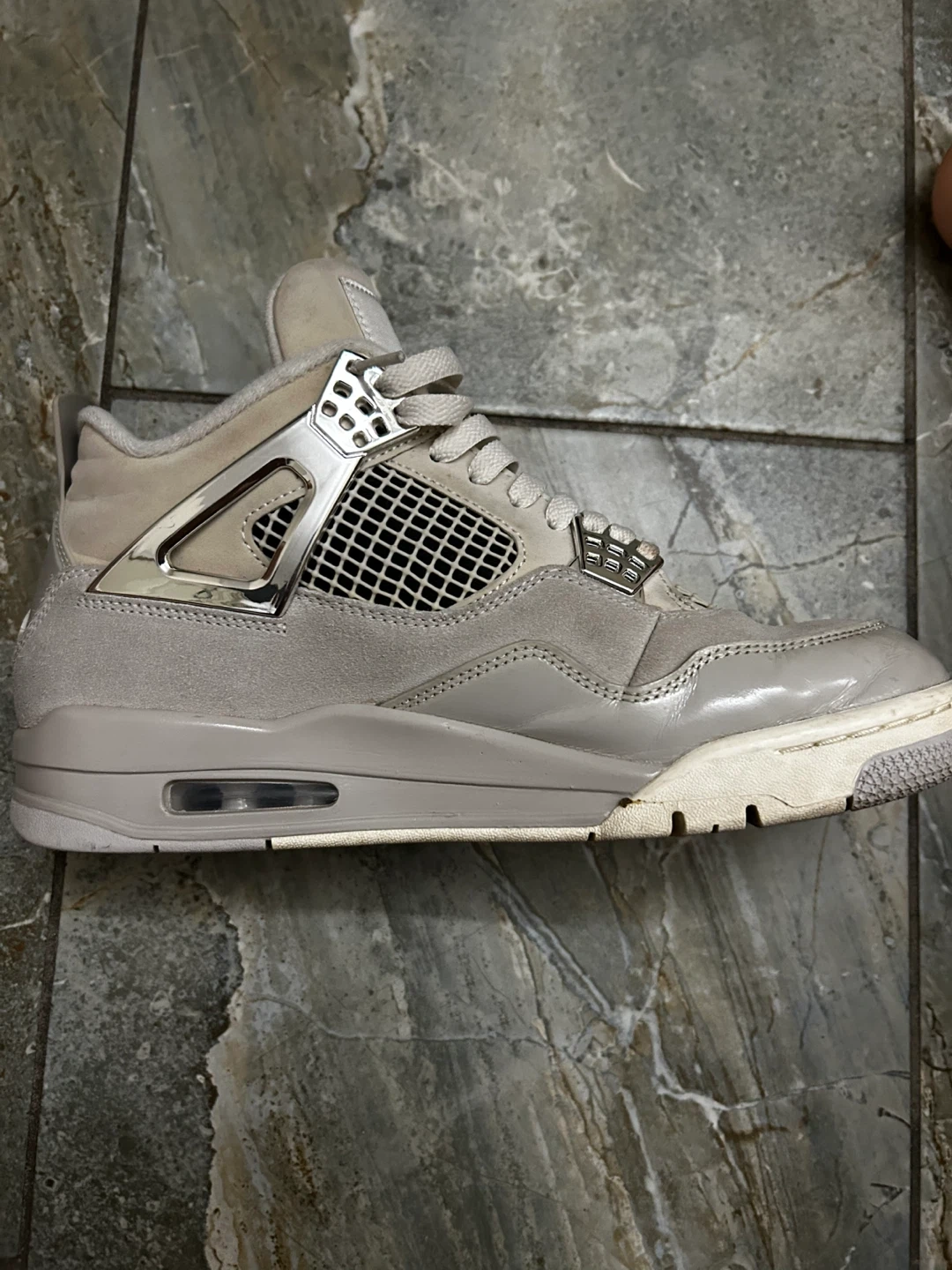Selling a pair of Jordan 4 Retro in Metallic Silver. These are in used condition, as you can see from the photos. They are a size 10.