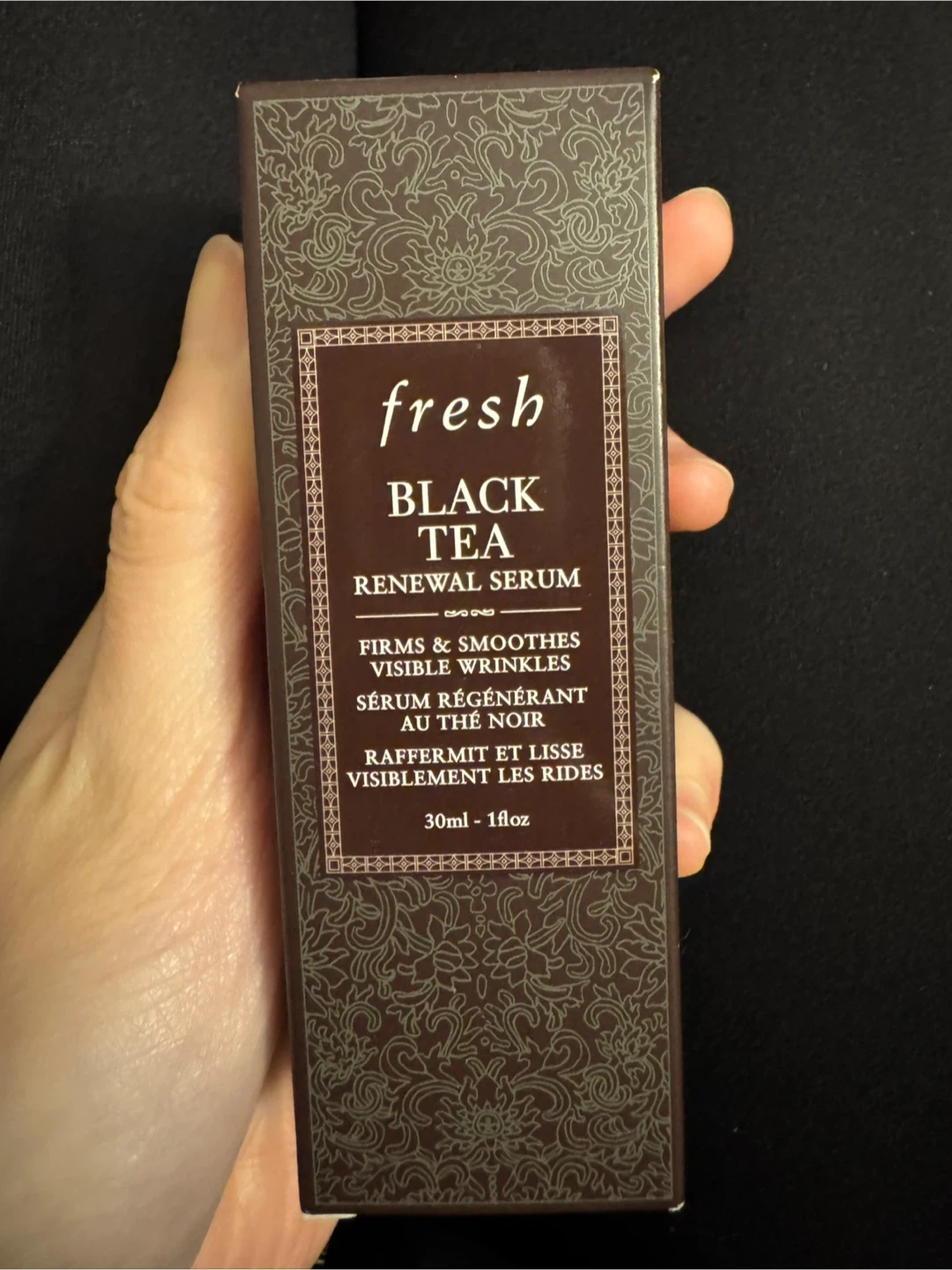 Selling a bottle of Fresh Black Tea Renewal Serum. This serum firms and smoothes visible wrinkles. It comes in a 1 oz / 30 mL size. Originally bought for $108.00