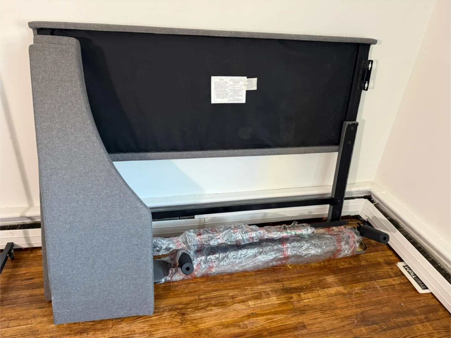 Wafair Gray Upholstered Queen Wingback Bed Frame with Slats