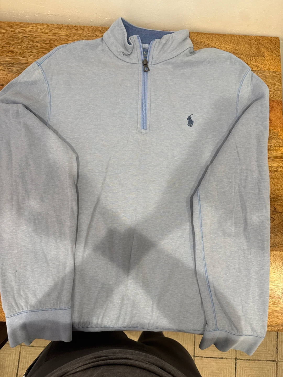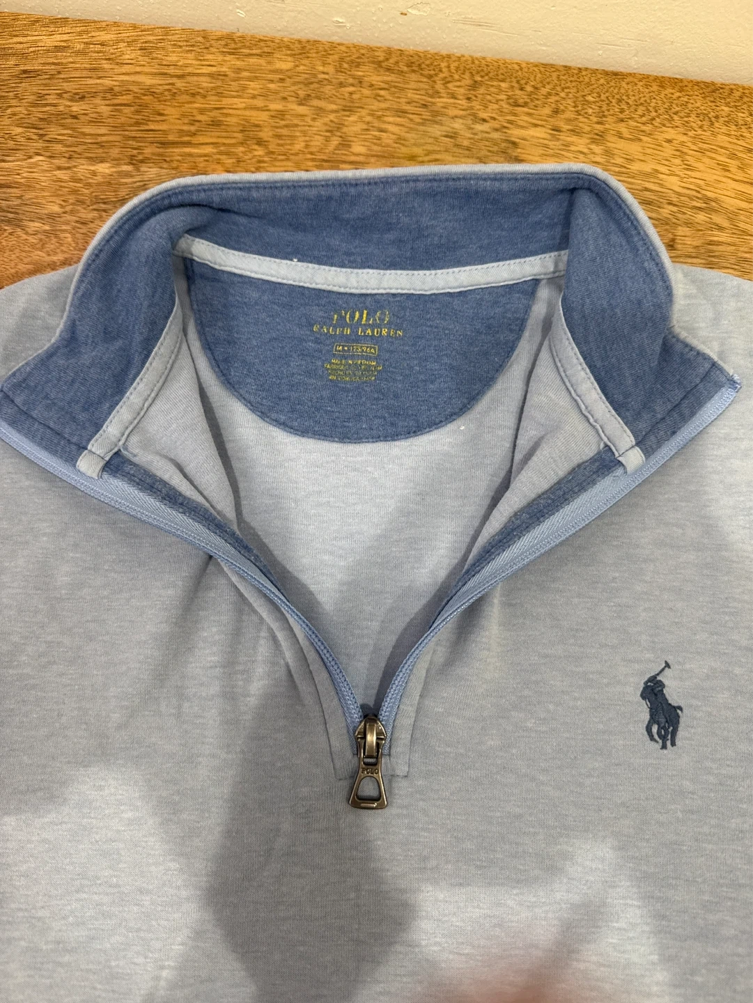 Light blue Polo Ralph Lauren 1/4 zip pullover sweatshirt. Made from a soft cotton blend. Size M. Perfect for casual wear!