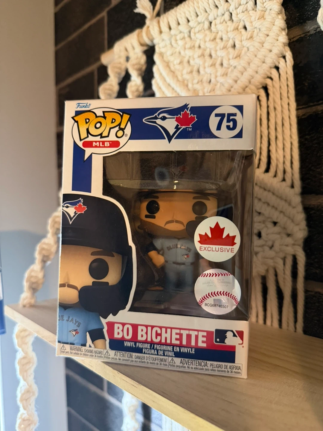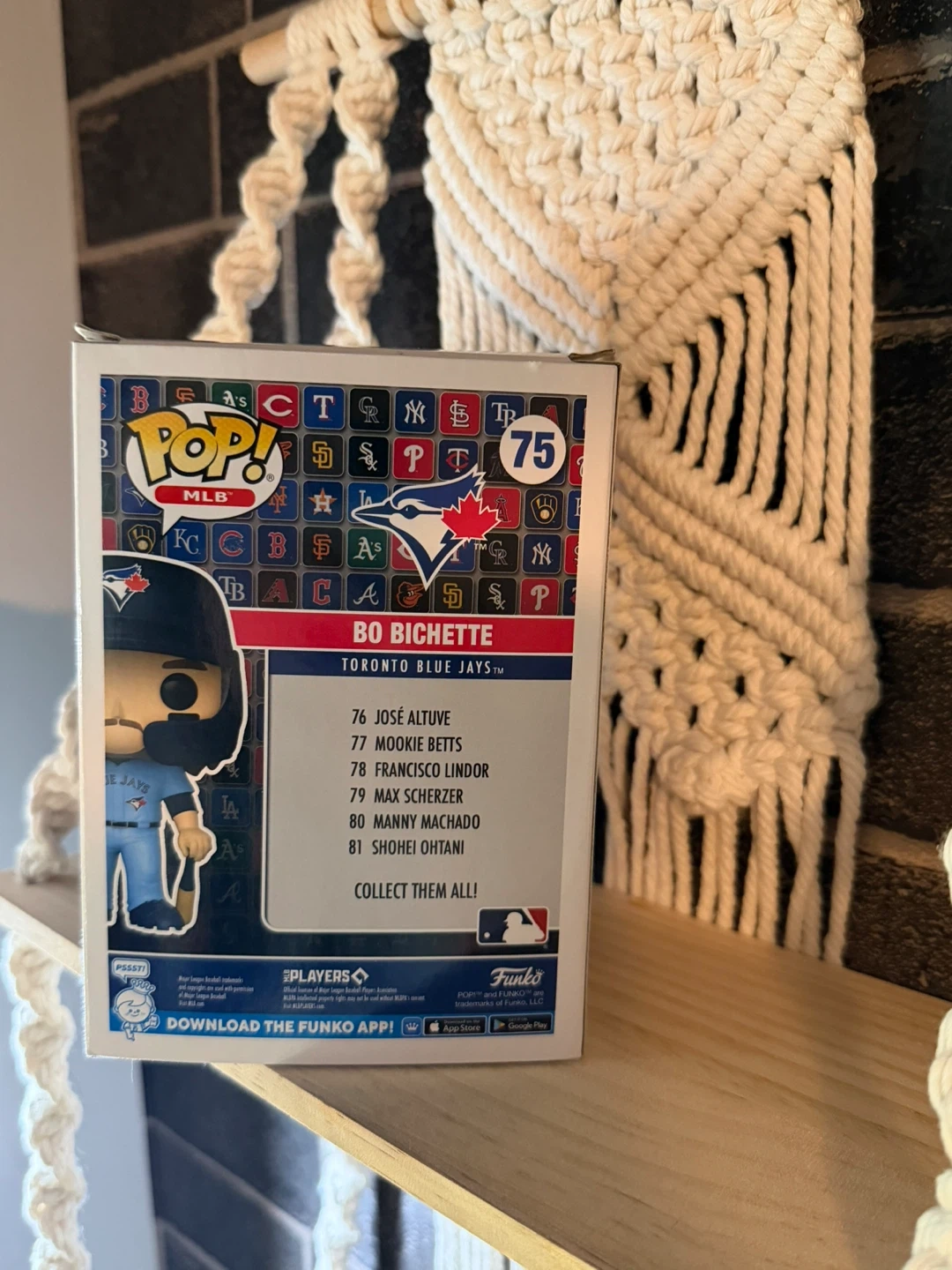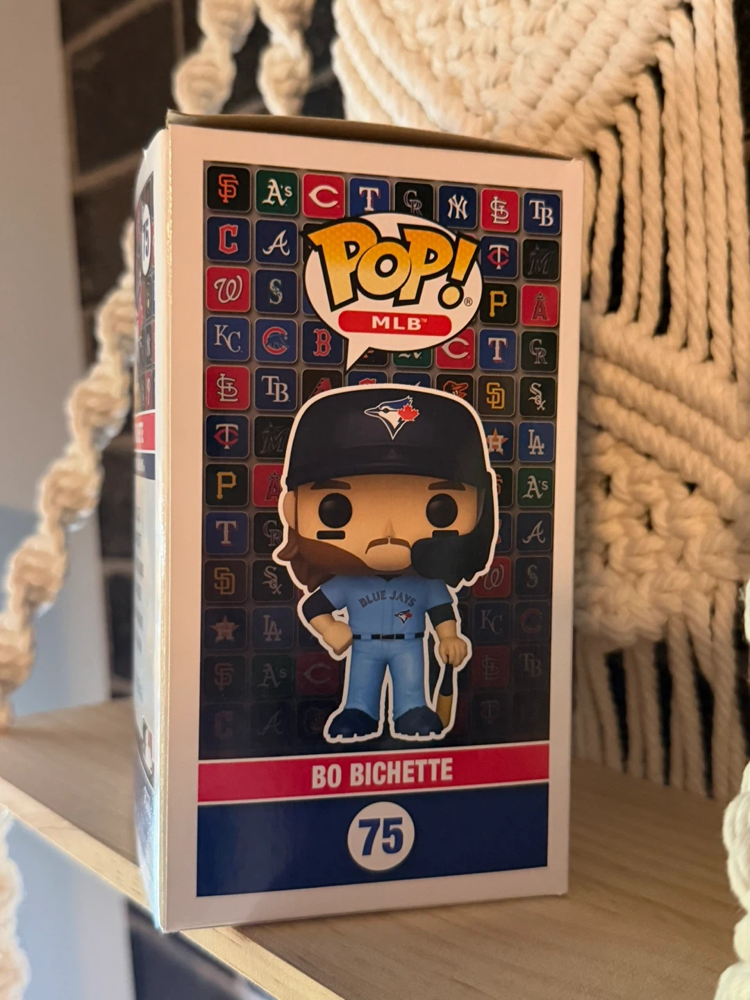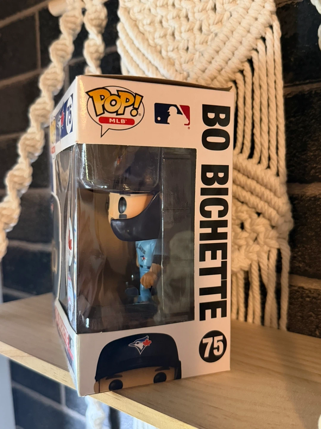 This is a Funko Pop vinyl figure of Bo Bichette representing the Toronto Blue Jays.