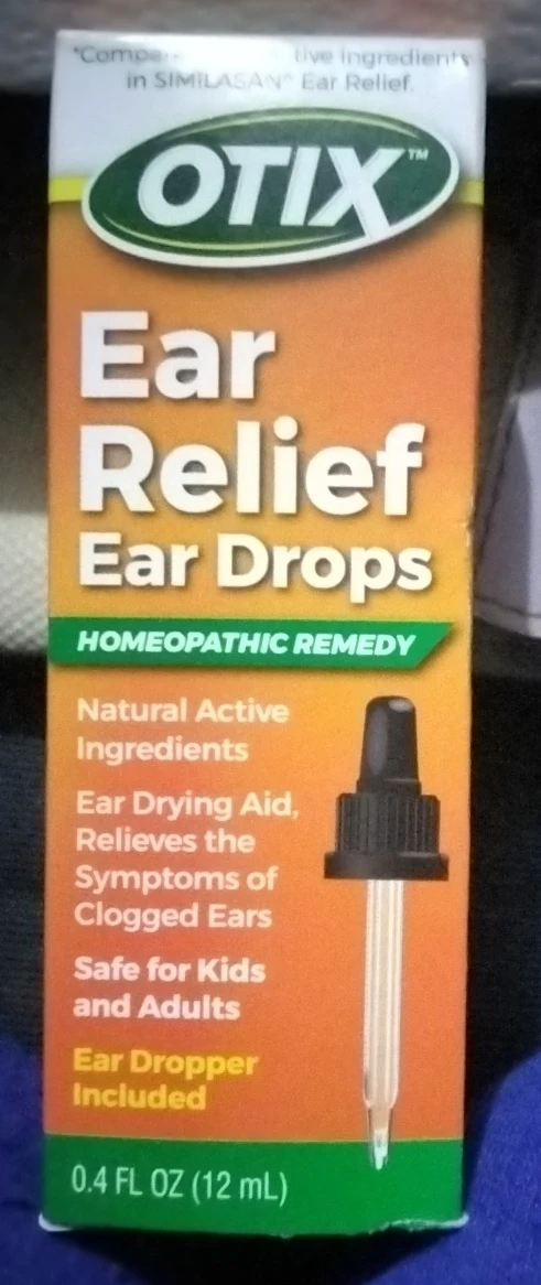 I'm selling Otix Ear Relief Ear Drops. It's a homeopathic remedy with natural active ingredients. It provides ear drying aid and relieves the symptoms of clogged ears. Safe for kids and adults. Ear dropper included. 0.4 FL OZ (12 mL)