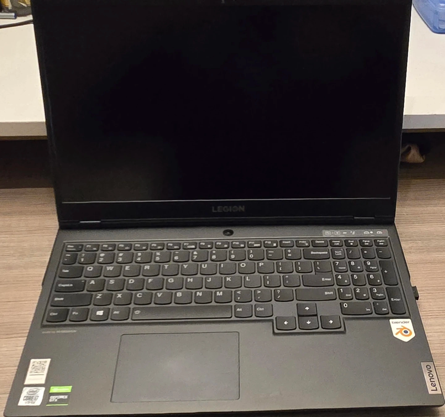 This Lenovo Legion laptop is designed for gaming. It features a Core i7 processor and NVIDIA GeForce GTX graphics. It includes a full keyboard with a number pad and a large trackpad.