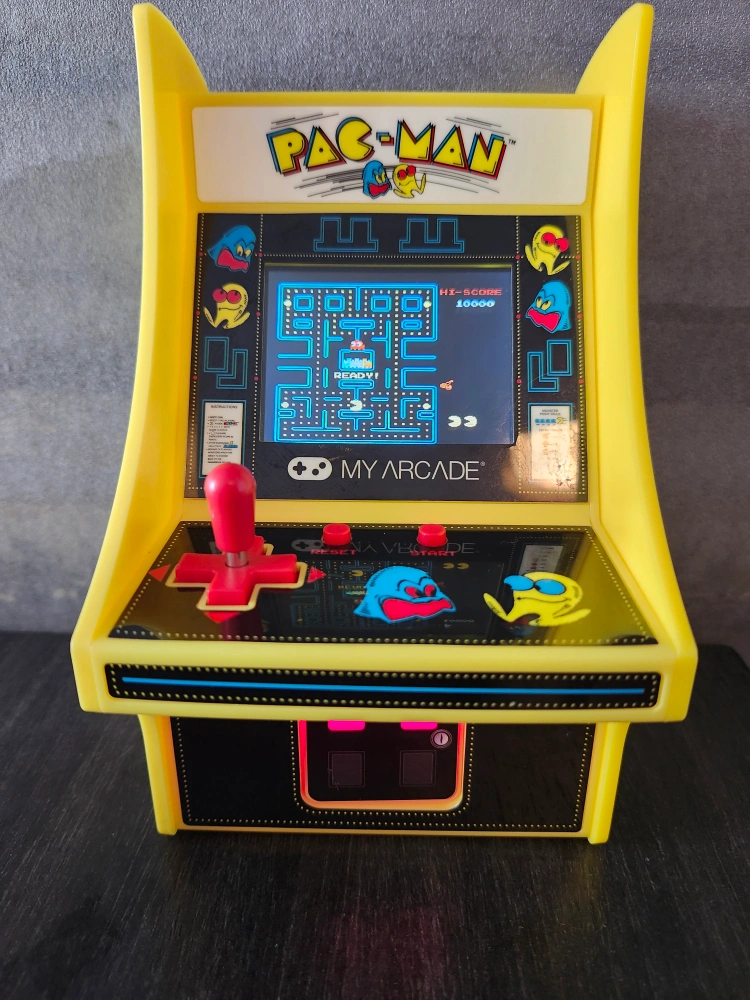 My Arcade DGUNL-3220 Micro Player Mini Arcade Machine Pac-Man Video Game, Fully Playable,6.75 Inch Collectible,Color Display, Speaker,Volume Buttons, Headphone Jack,Battery or Micro USB Powered, Black