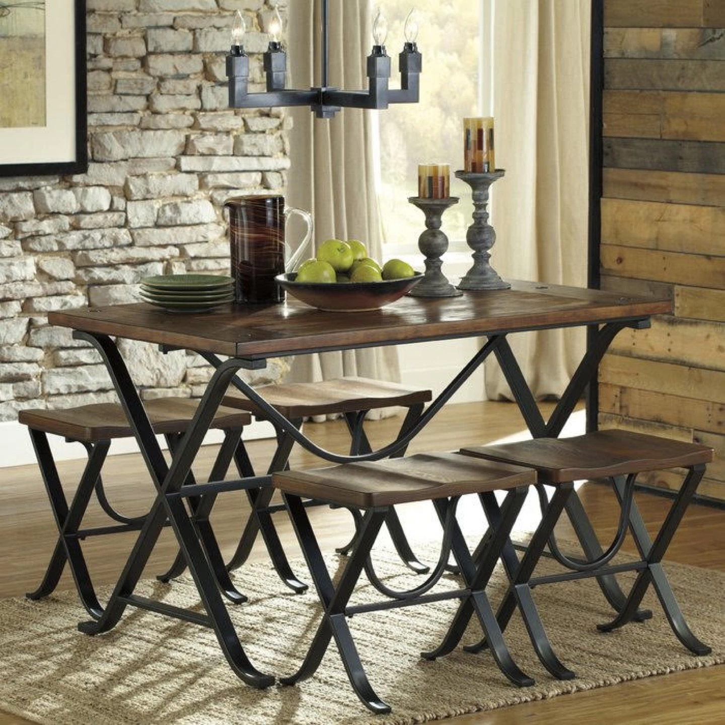 12Beautiful rustic dining room set made of wood and metal. Perfect for small dining area, foyer or kitchen nook. Boxed and ready to go. Pick up in Riverdale, Bronx. Serious offer will be considered.