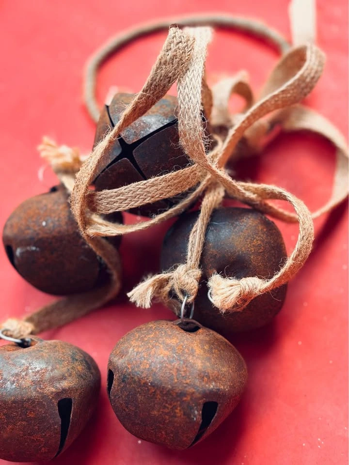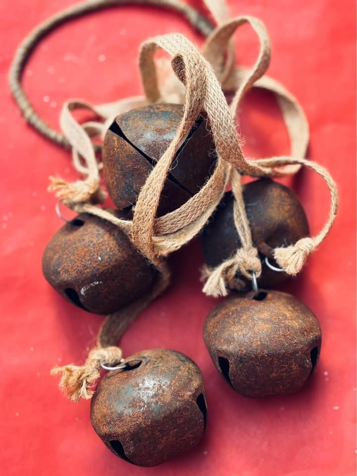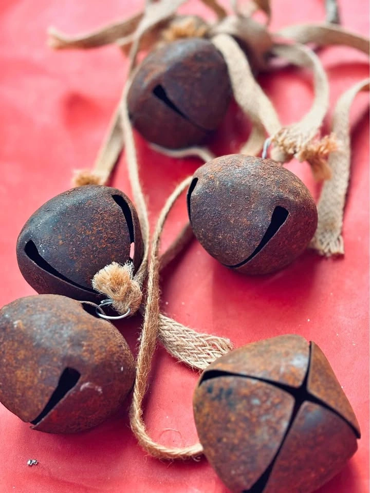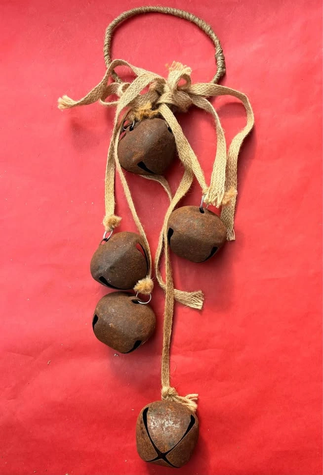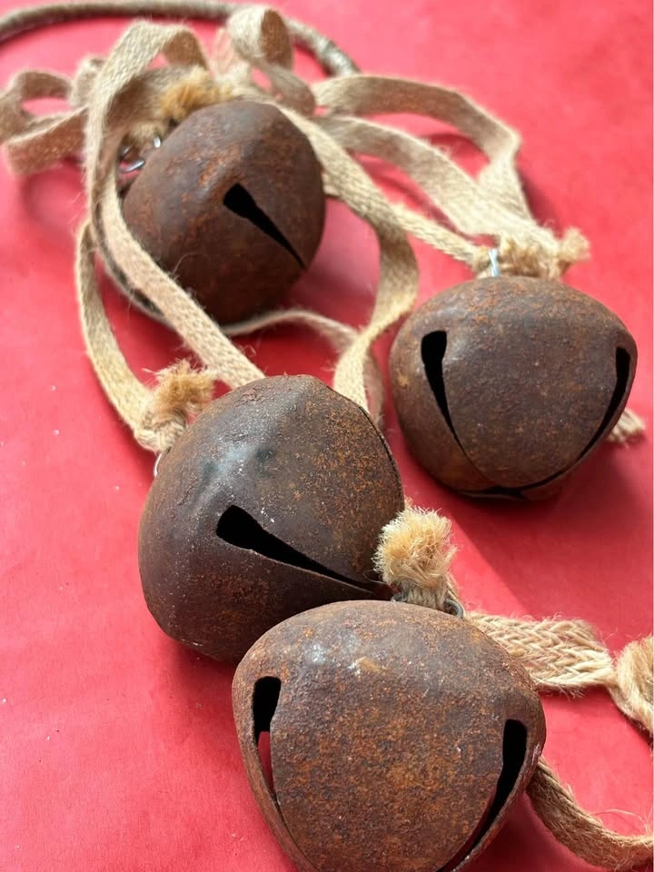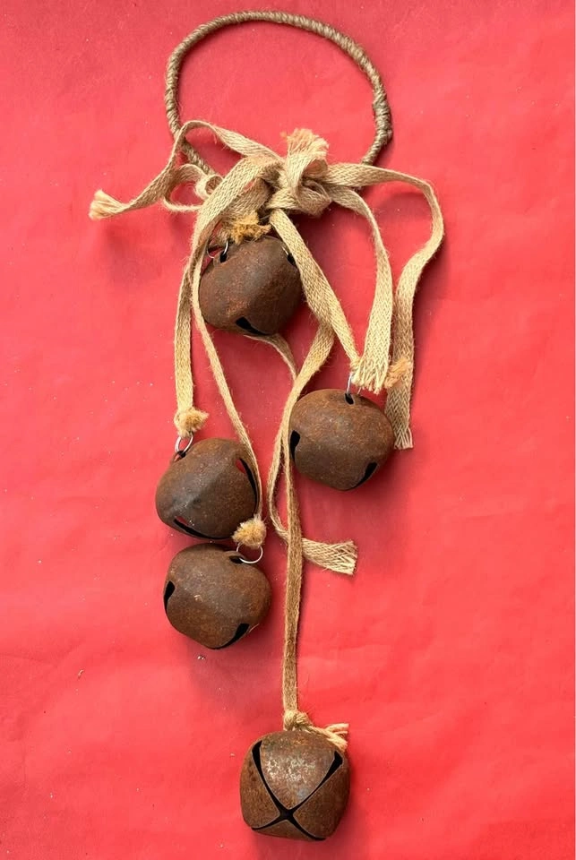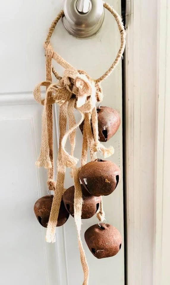 15Rustic Holiday Door Hanger with Large Reindeer/Sleigh Bells Like New Rustic Metal Bells with Jute Rope Bow and large round ring for easy hanging * Designed with an intentional “rusty“ look for a rustic and nostalgic appeal * Add this festive door hanger to your holiday decor for the welcome and familiar sound of jingle bells to help make the season cheerful & bright