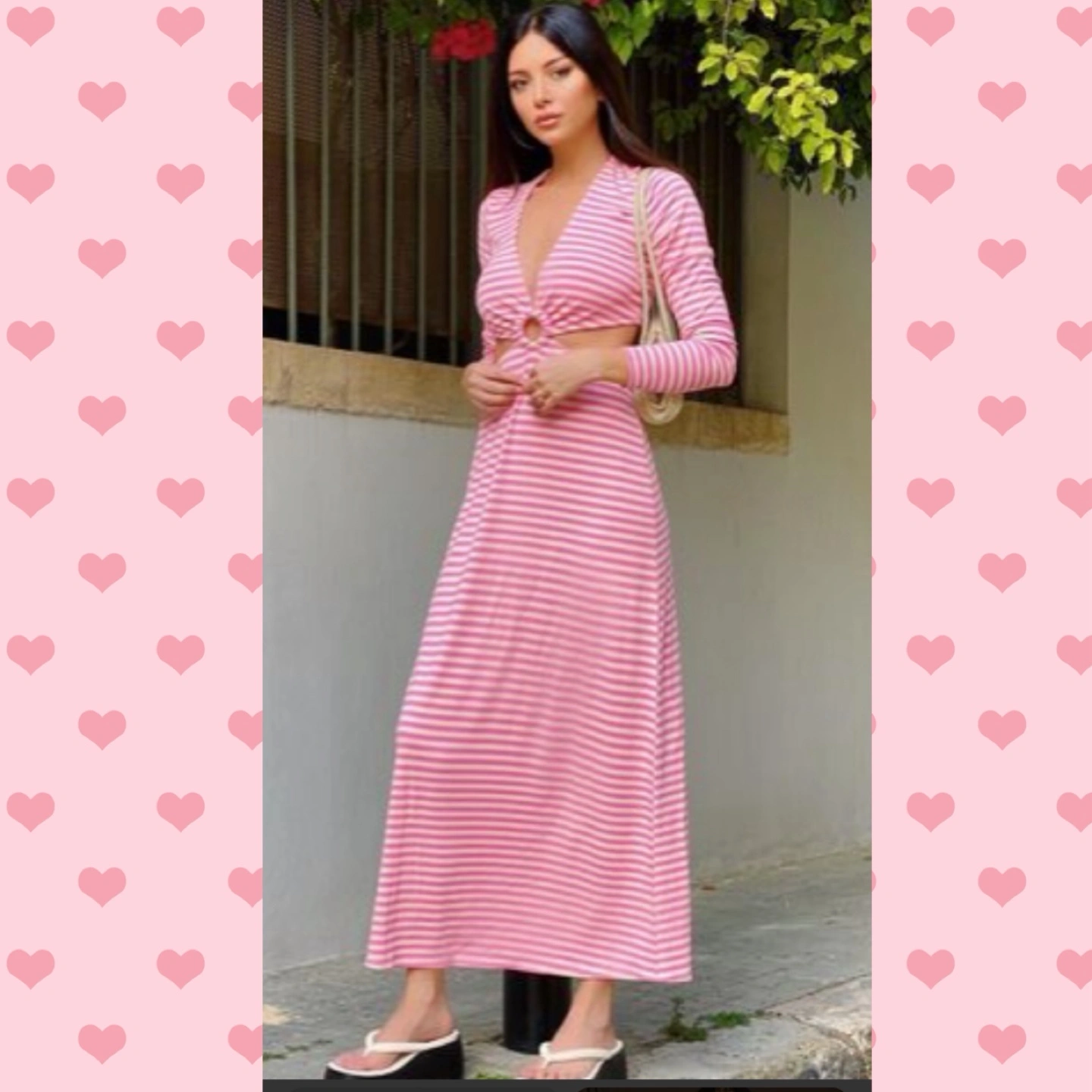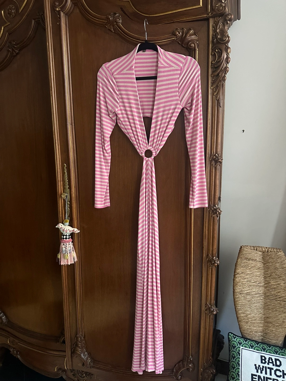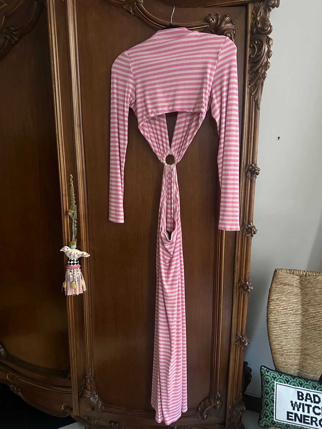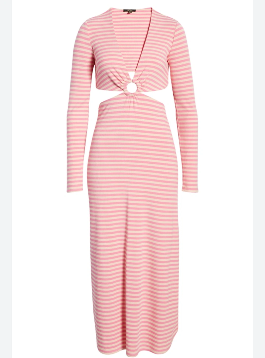 AFRM Harlee Cutout Waist Long Sleeve Dress in Pink Stripe Size Small