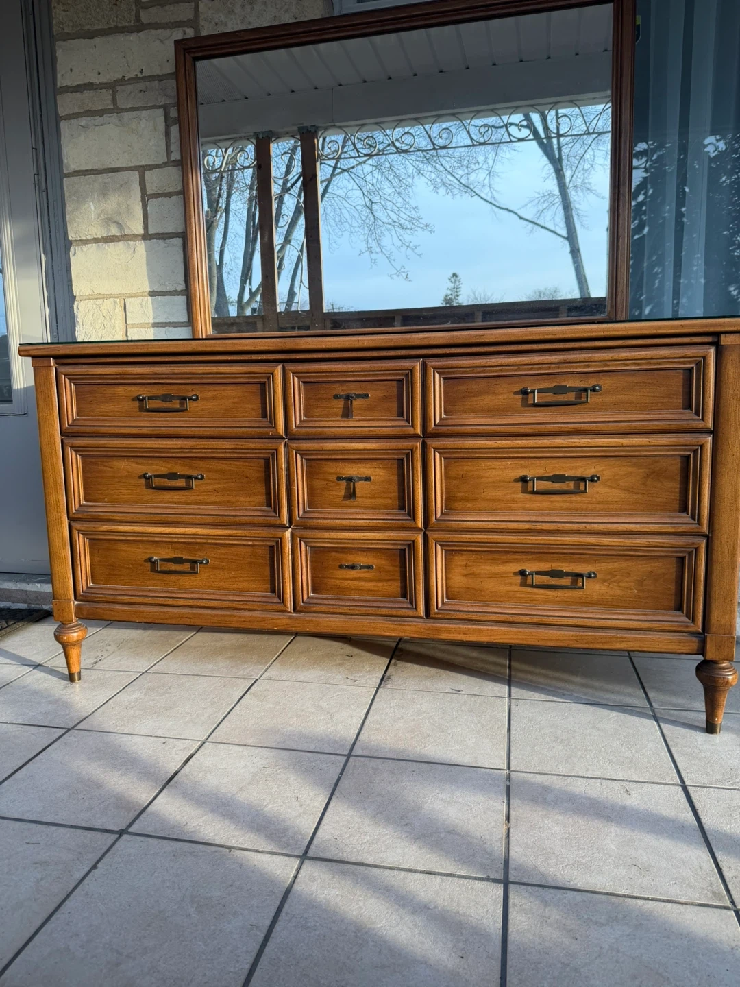 White Fine Furniture Dresser with mirror and removable glass top.
