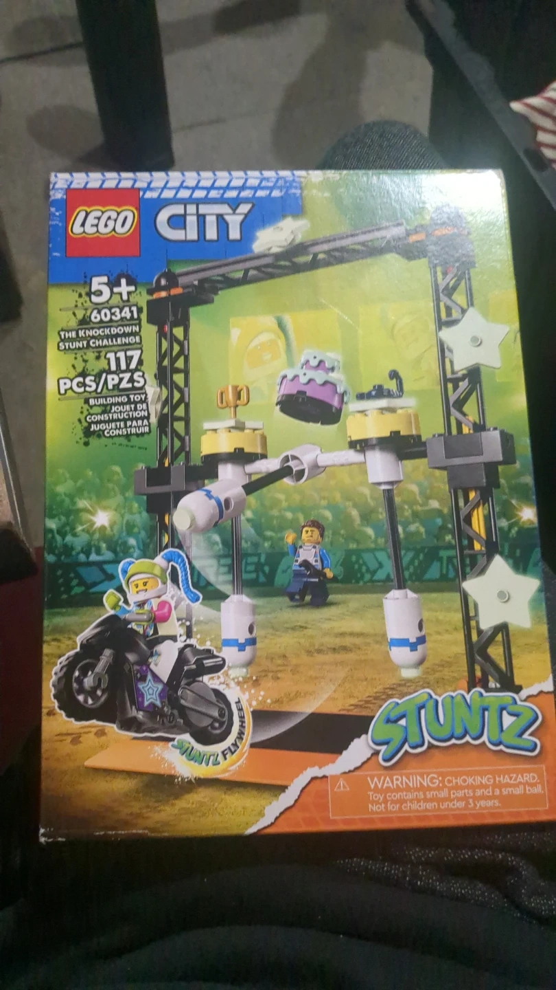 Build the awesome LEGO City Stuntz Knockdown Stunt Challenge playset, featuring a motorcycle with a flywheel, stunt ramps, and obstacles. It includes 117 pieces and minifigures. This set is recommended for ages 5 and up, offering exciting stunt action!