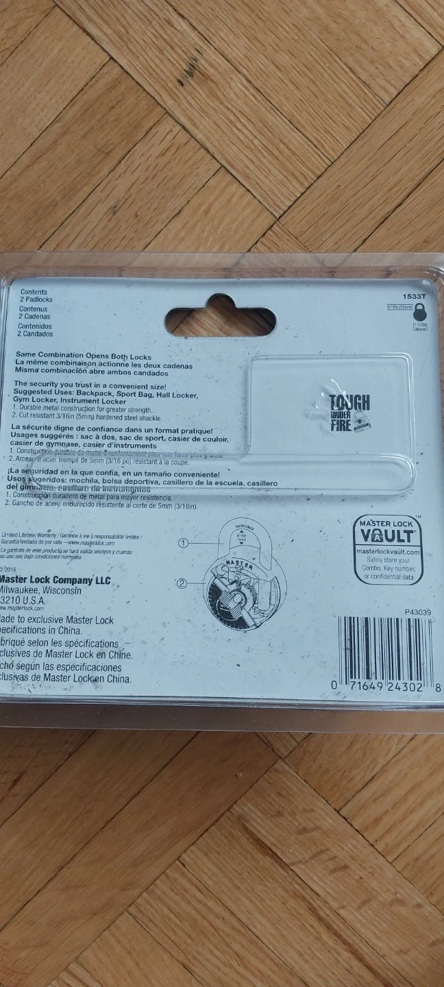 This is a 2-pack of Master Lock Minis combination locks. Each lock has a 1 5/16in (35mm) wide body. The shackle is 4mm (3/16in) in diameter and has a length of 25mm (1in). These locks are great for securing bags, lockers, or cases.