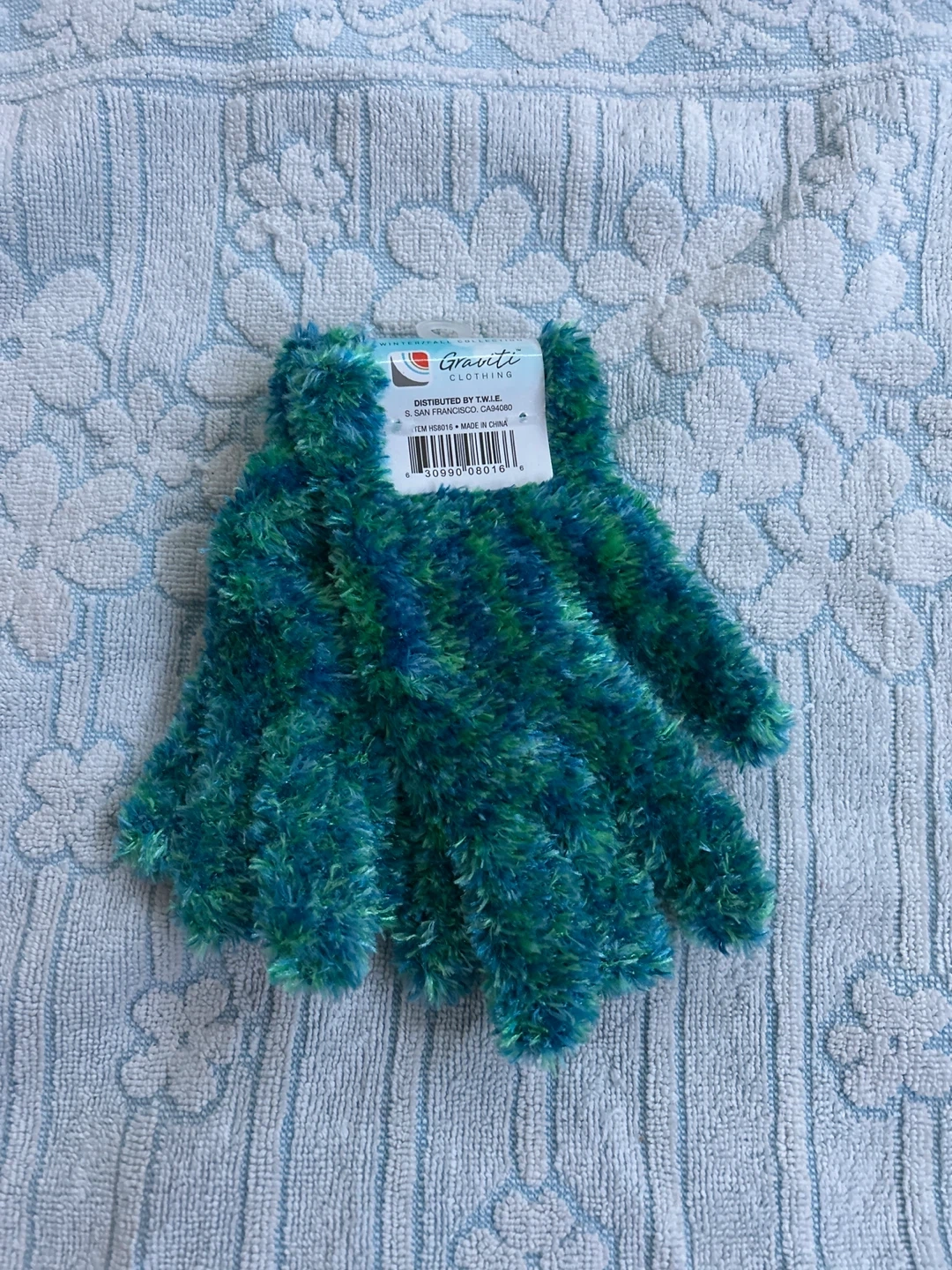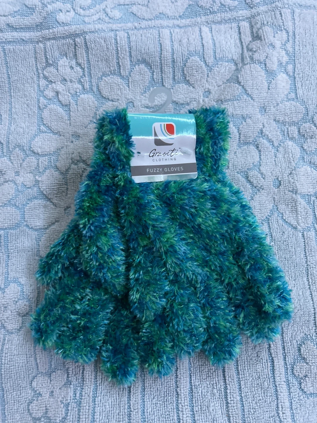 These Graviti fuzzy gloves are in a lovely teal and green colour mix. They're made from a soft, fuzzy material. These would be great for keeping your hands warm on a cool winter day!