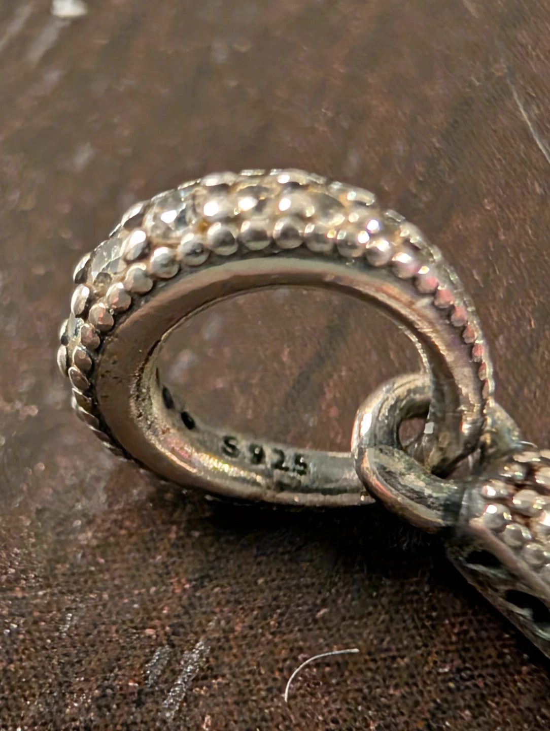 This is a lovely sterling silver cross pendant! It's encrusted with clear cubic zirconia stones for a bit of sparkle. The bail features a decorative beaded design. A classic accessory for any outfit.