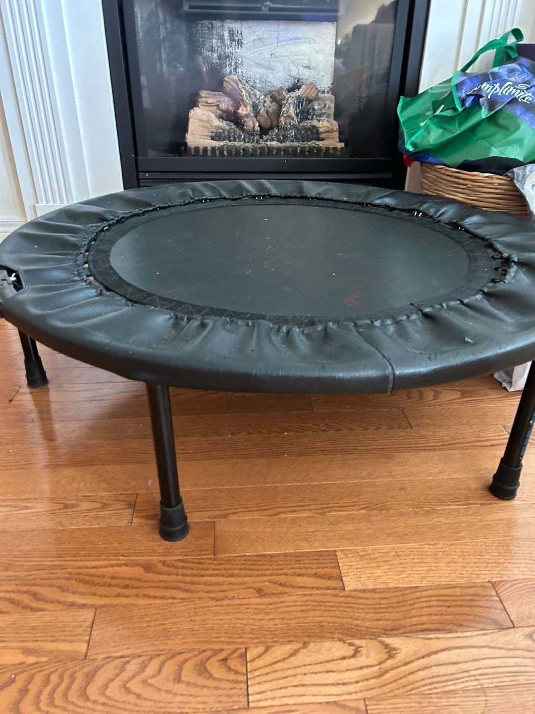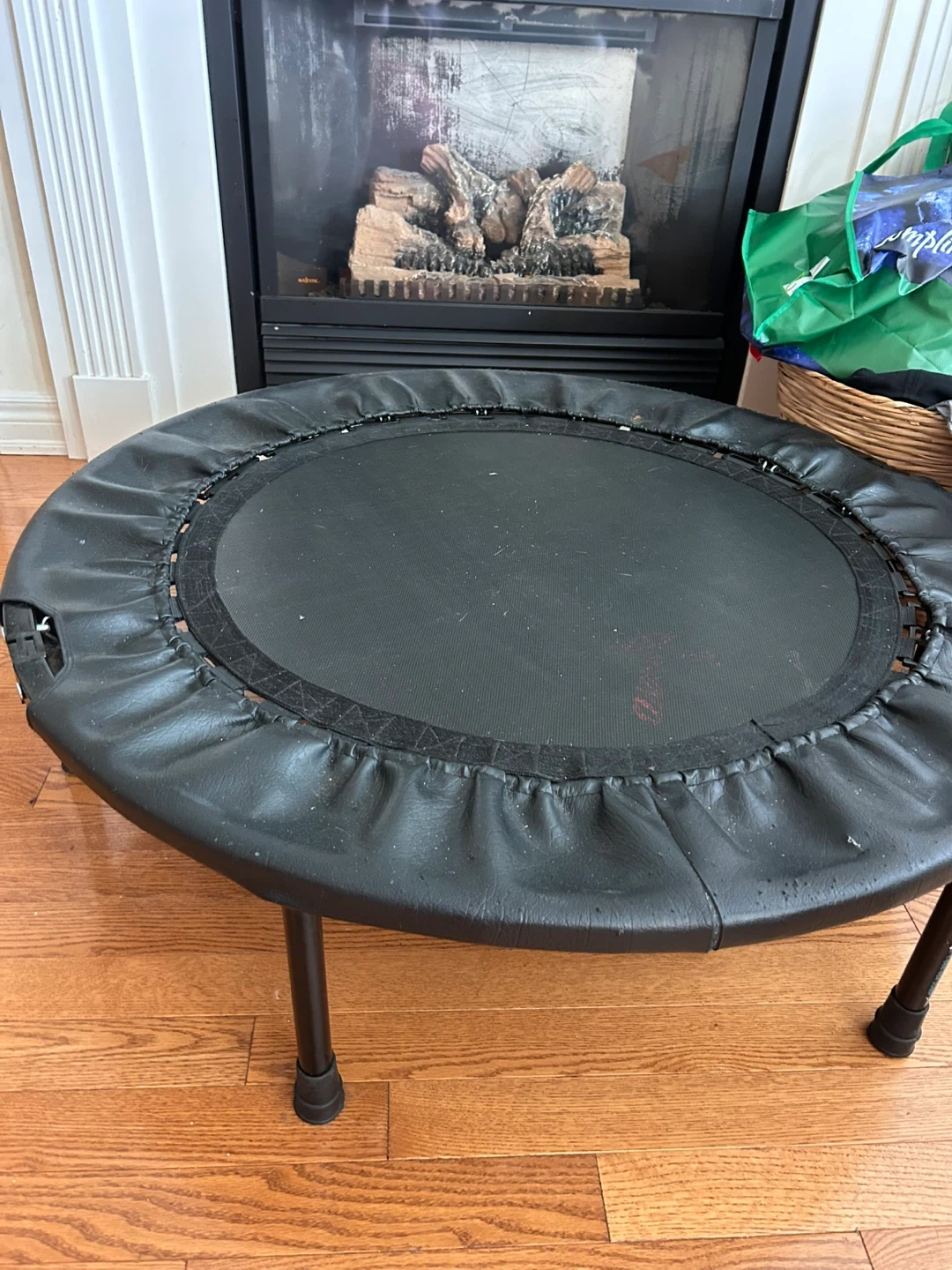 Moving and no longer needing this trampoline but it served my family well for quite a few years. The leather is a bit worn in the edges but bounce is still that same as when we got it.