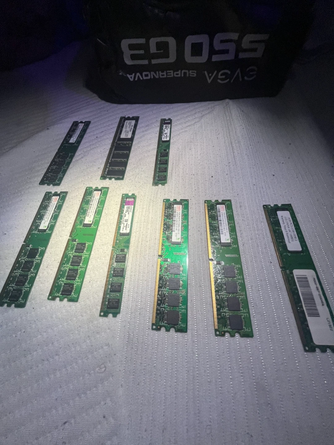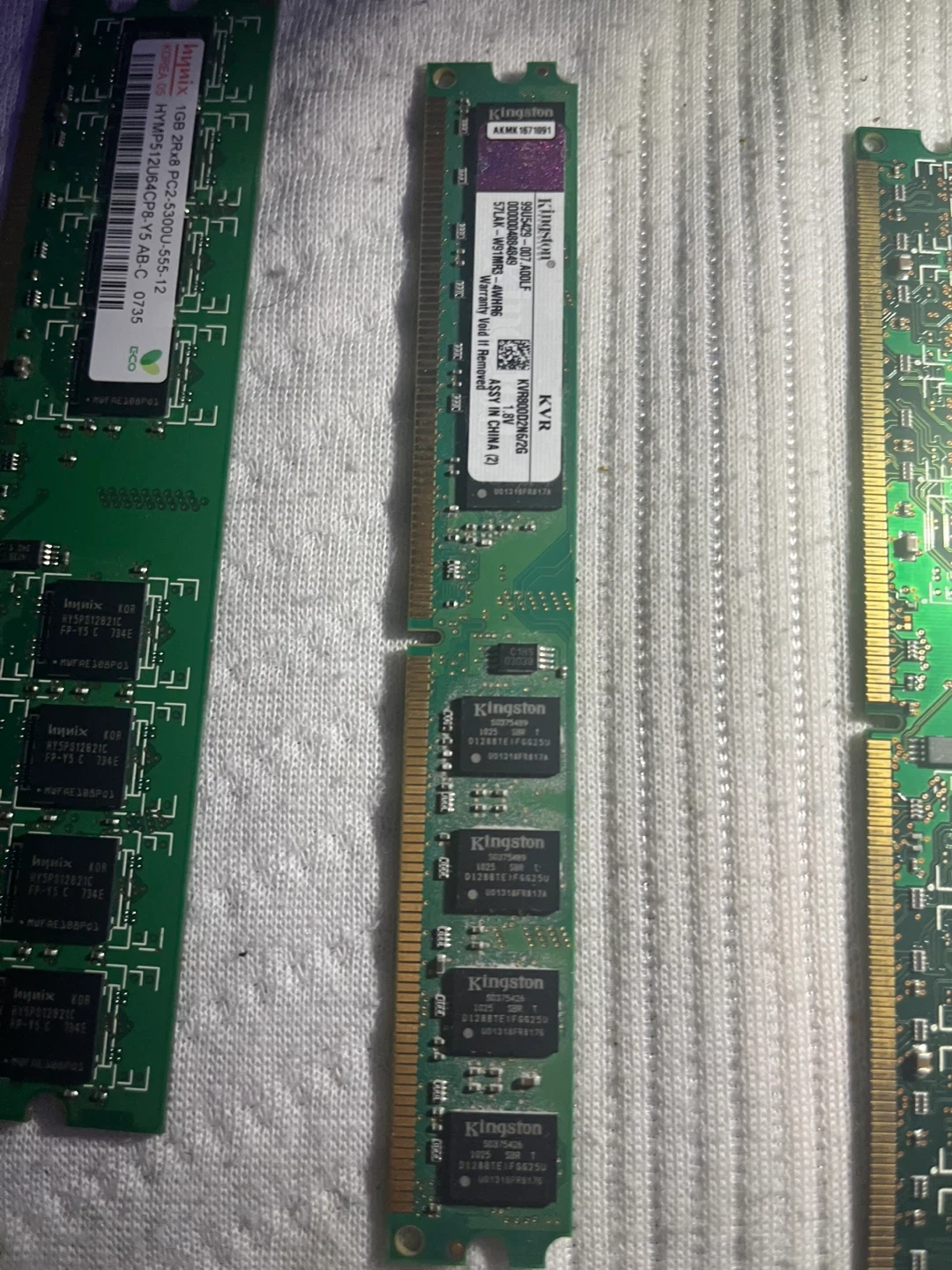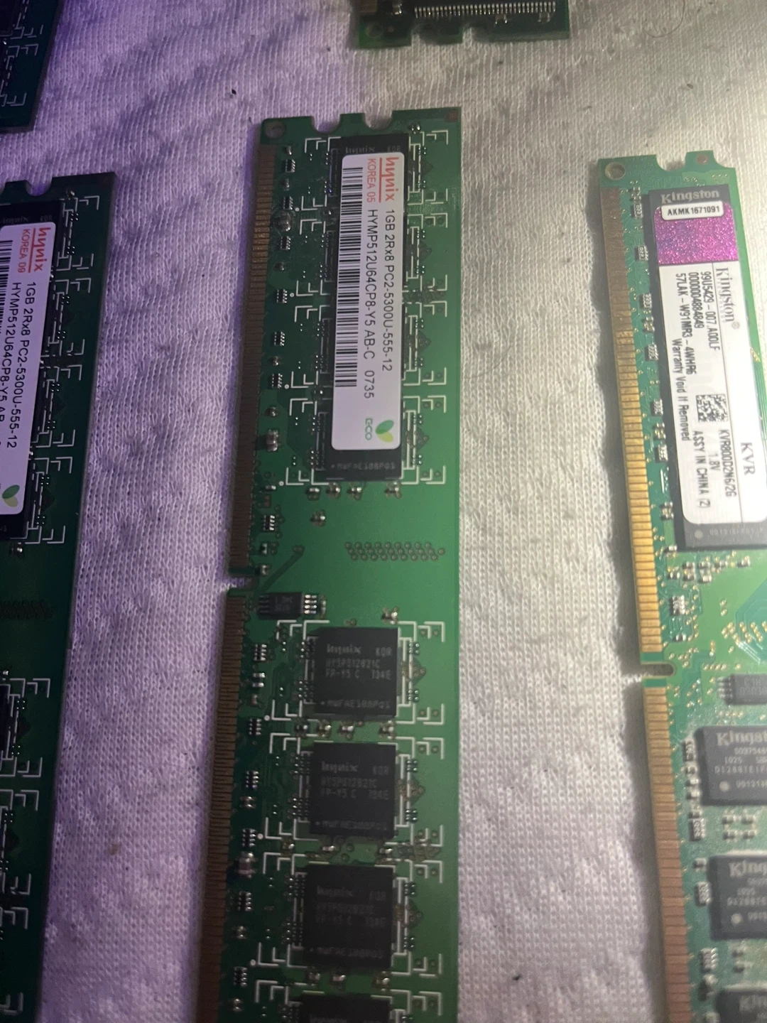 Assorted Kingston and Hynix DDR2 RAM modules. Includes various capacities such as 1GB and 2GB sticks. Tested and functional.