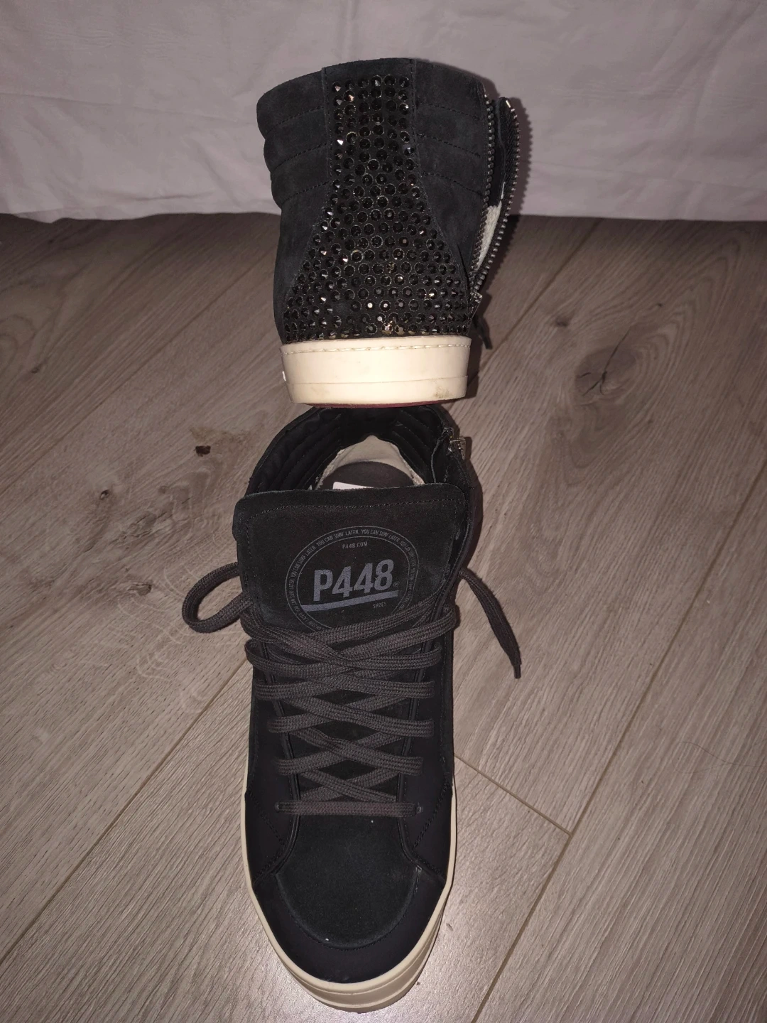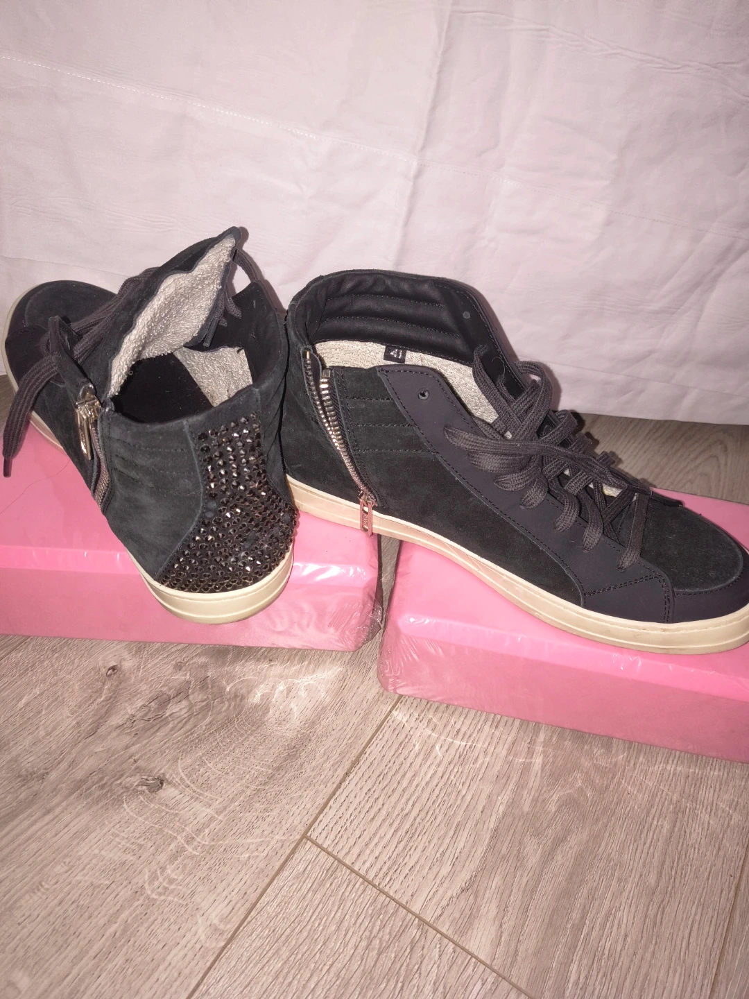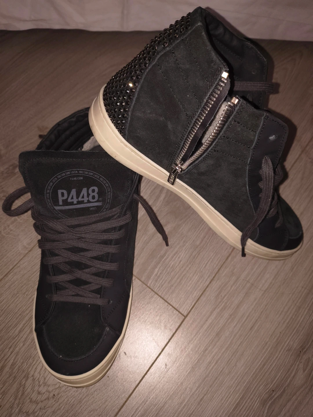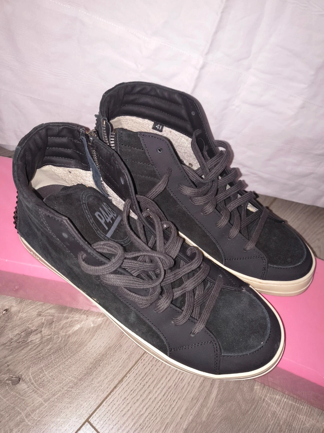 P448 high-top sneakers in a dark grey suede. Features a side zipper and studded heels deco, Made in Italy. Size 41. Too small for me ,π₯Ή Never Been Worn Are Origonally $420