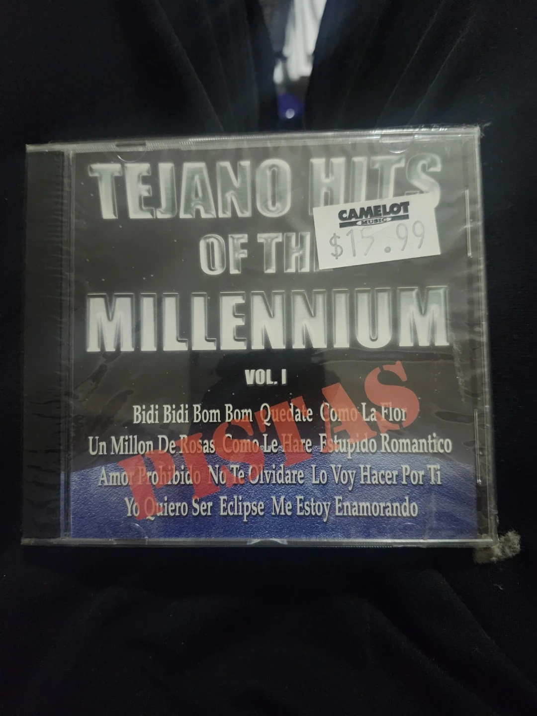 This CD features Tejano Hits of the Millennium Vol. I. It includes songs like Bidi Bidi Bom Bom, Como La Flor, and Amor Prohibido. This collection is a great way to enjoy classic Tejano music.
