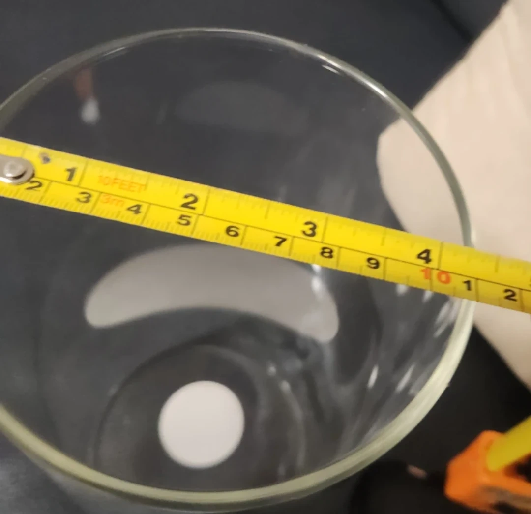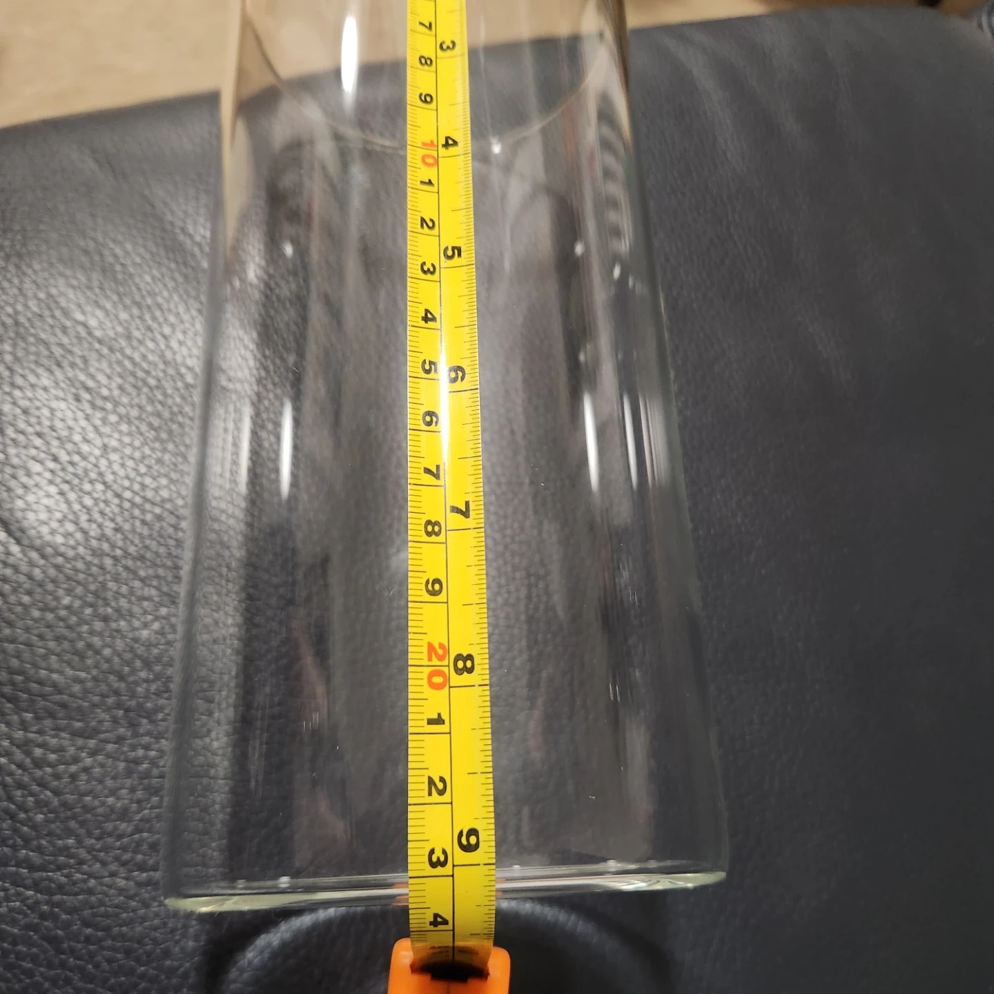 This is a clear glass cylinder vase. It measures approximately 9 inches in height and 4 inches in diameter. It's suitable for flowers or as a candle holder. Hand wash only.