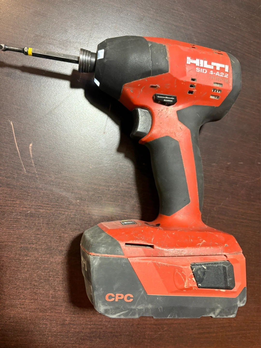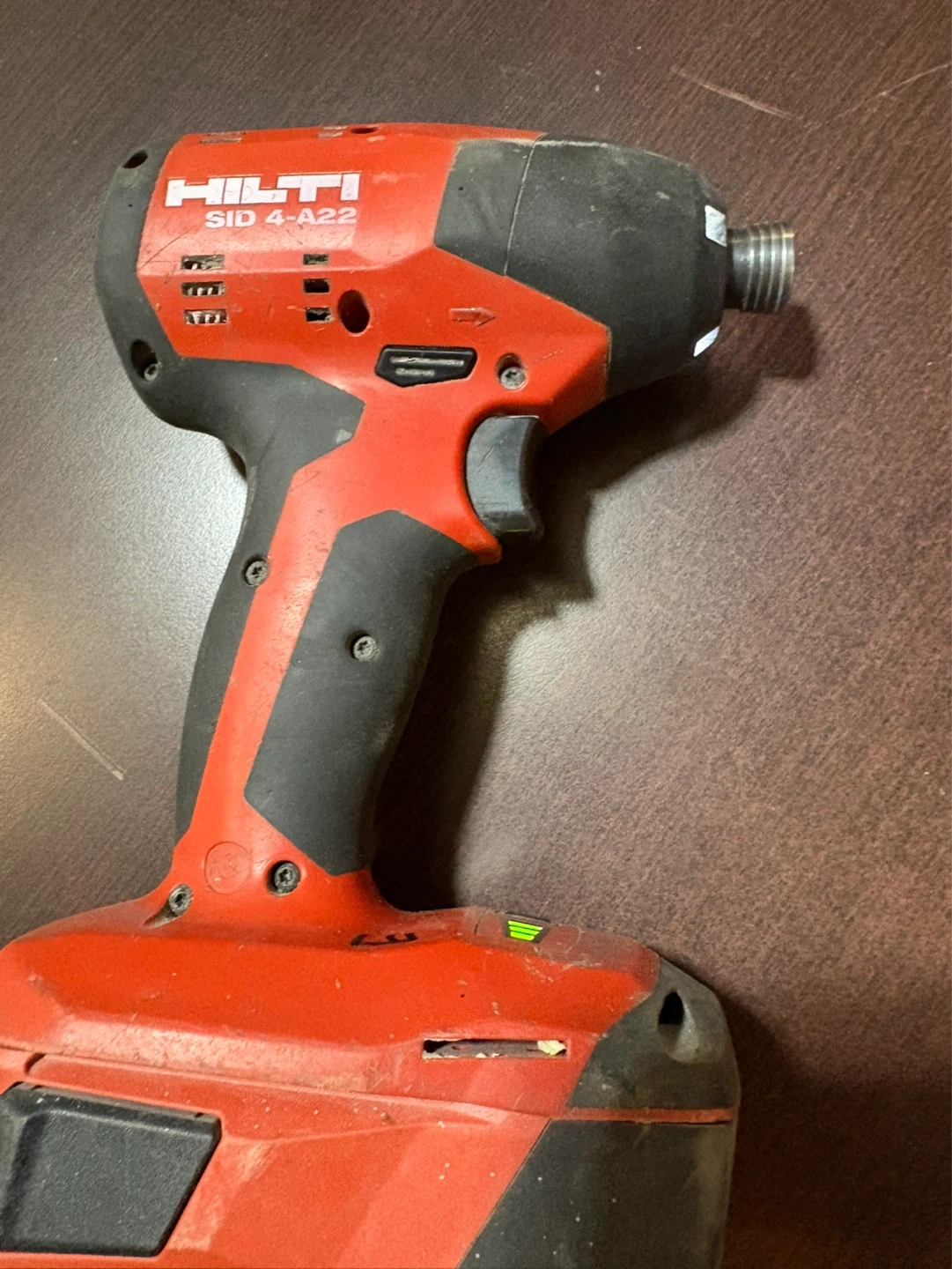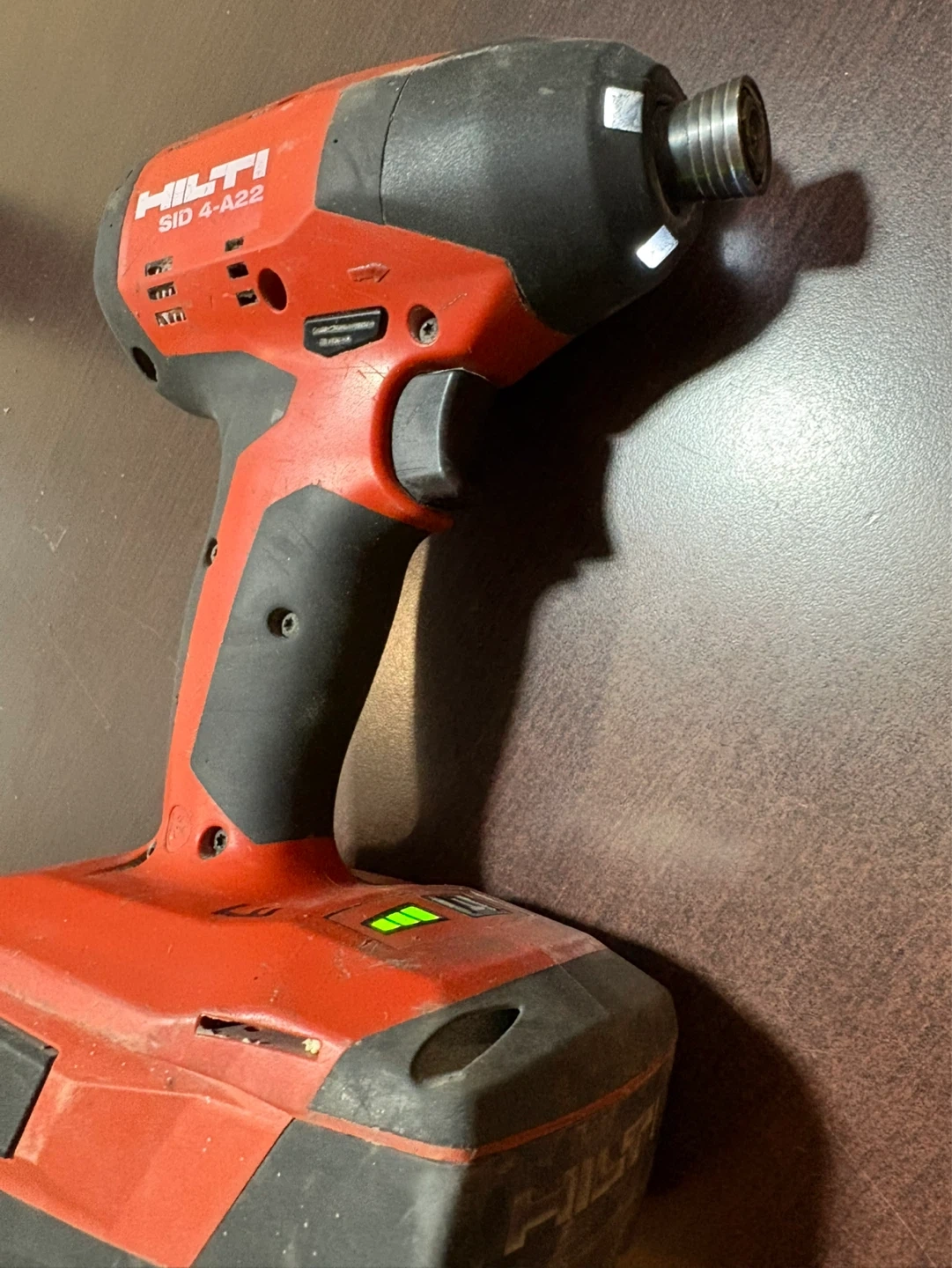 Hilti SID 4-A22 cordless impact driver. This tool is red and black. It's designed for fastening applications.