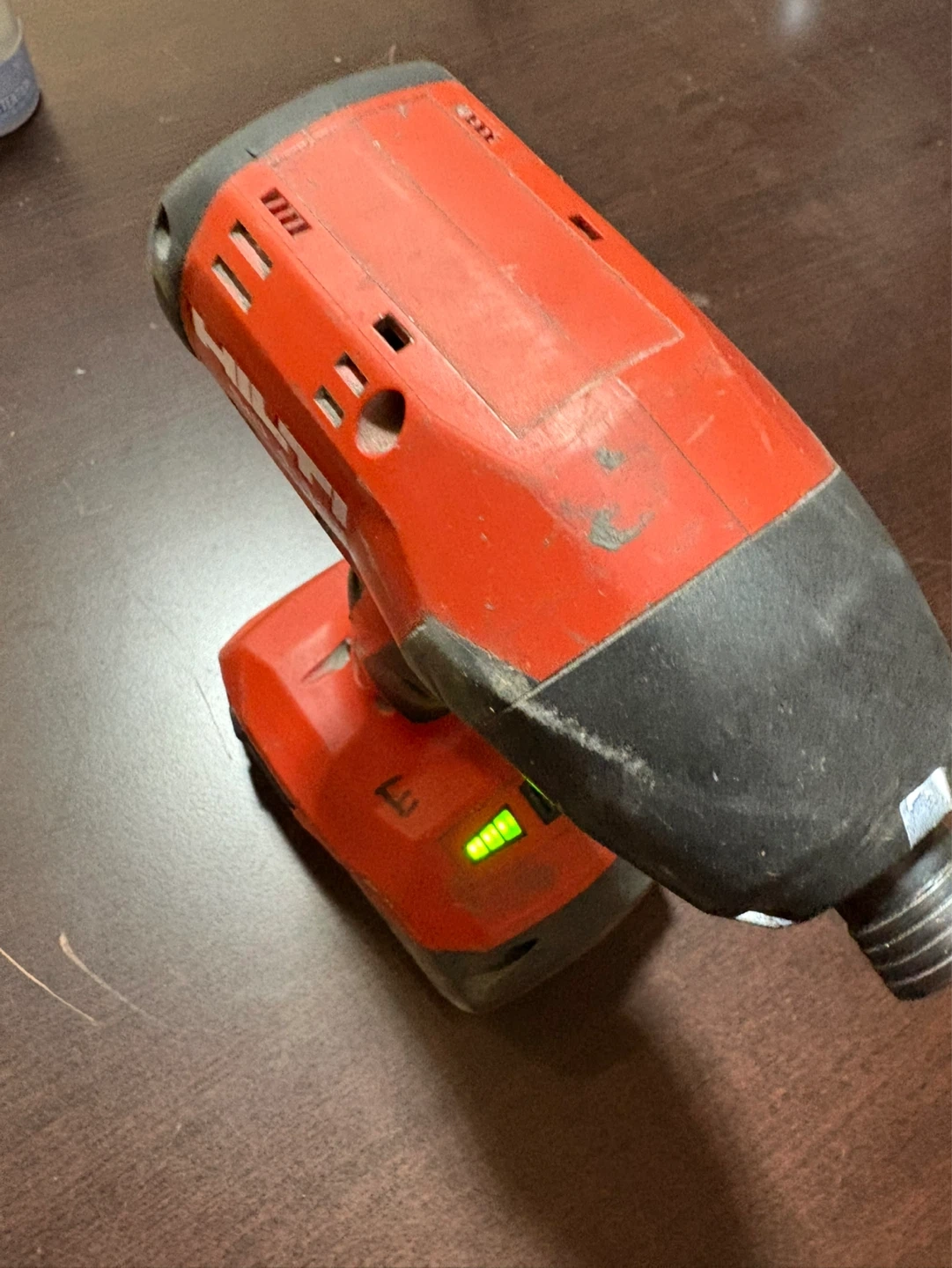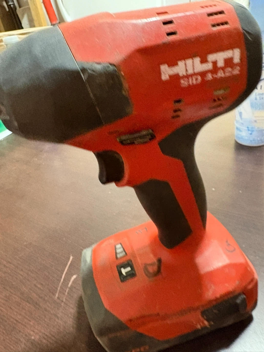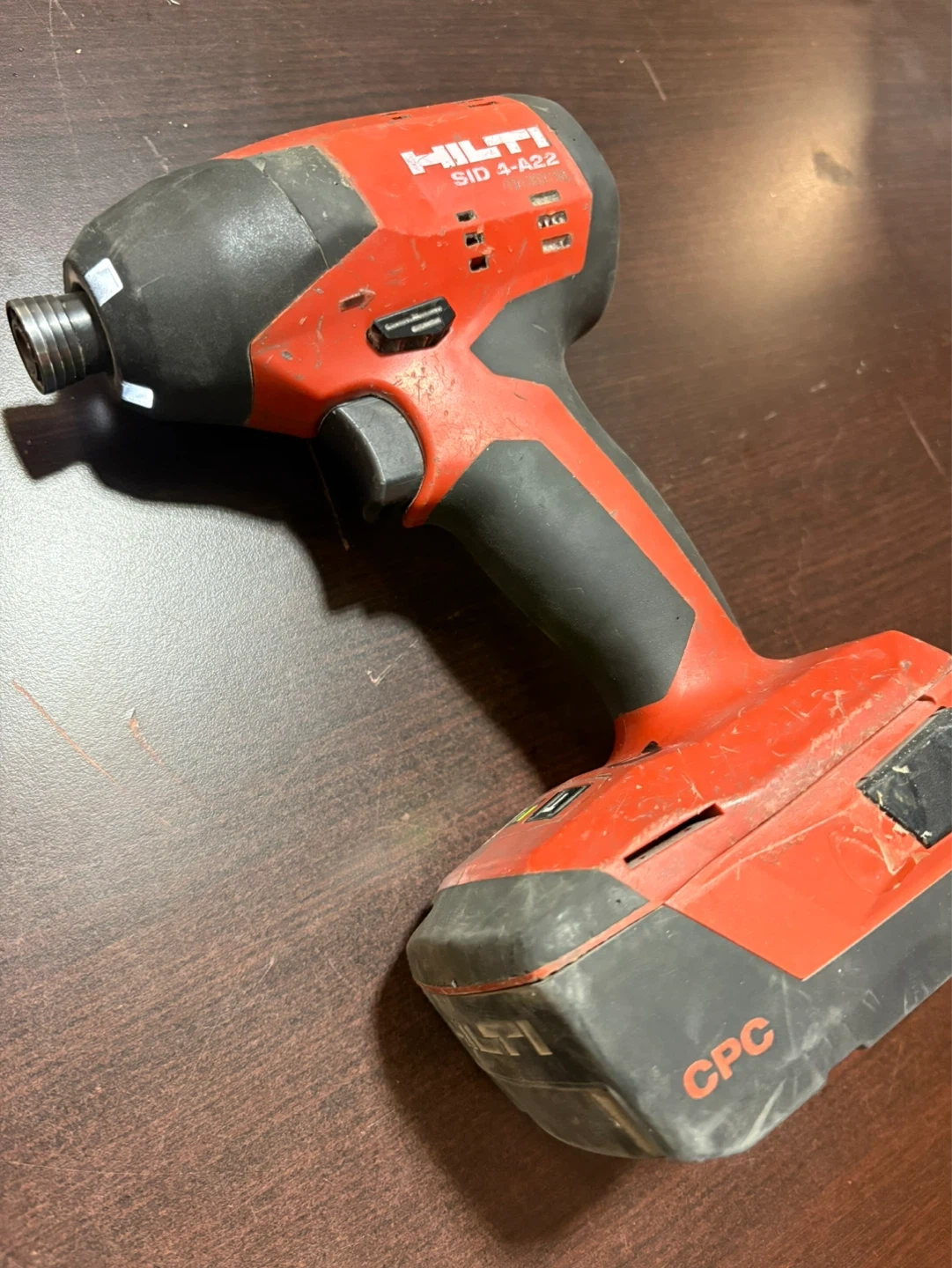 Hilti SID 4-A22 cordless impact driver. This tool is red and black. It's designed for fastening applications.
