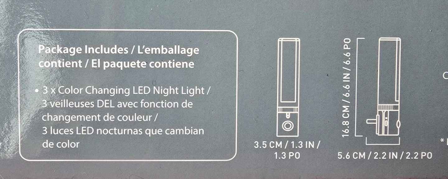 Set includes three color-changing LED night lights.