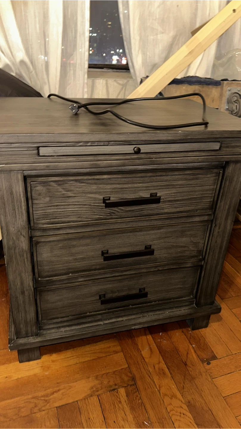 Gray Wooden Dresser and Nightstand Set