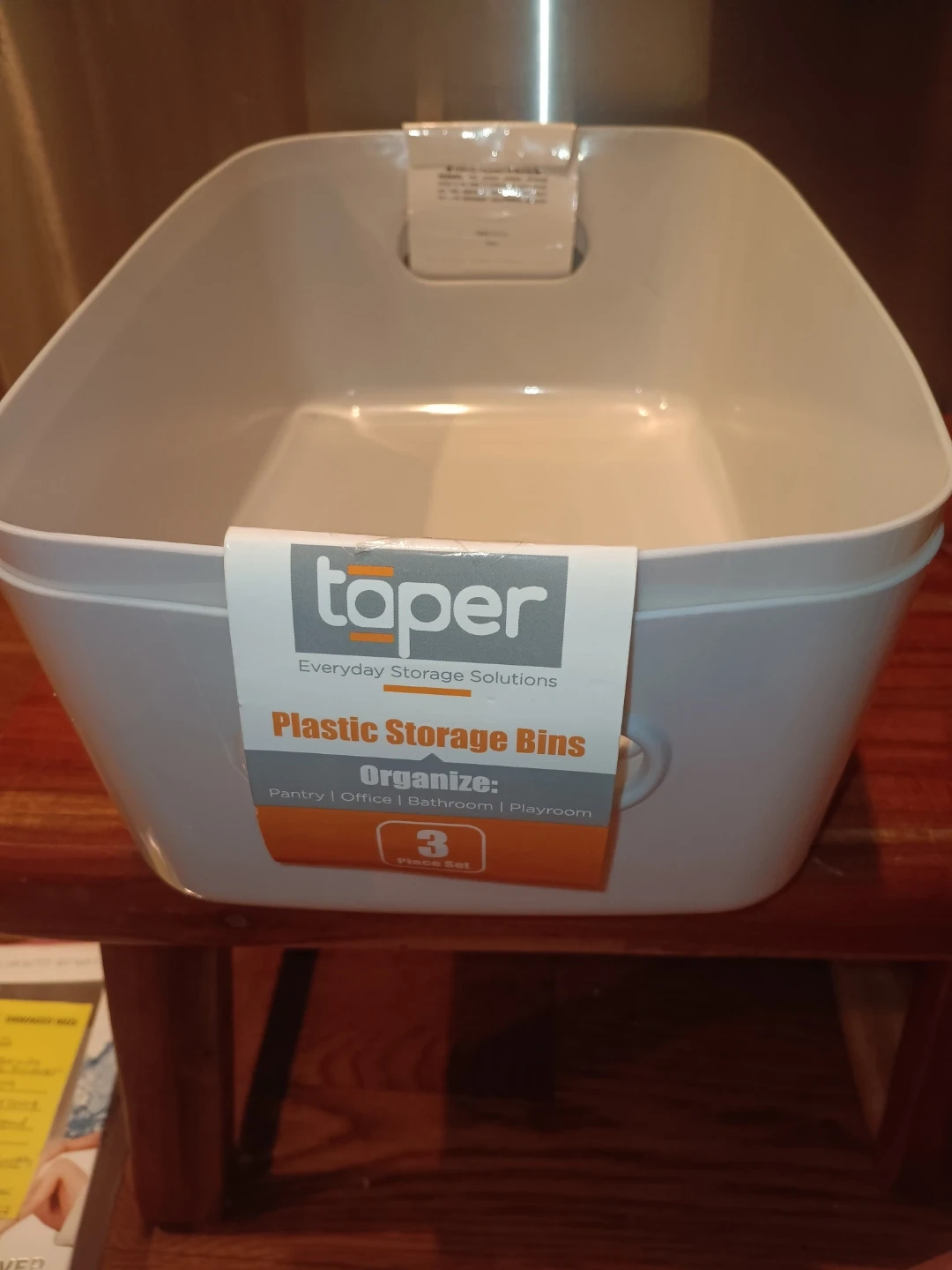 These Taper plastic storage bins are designed for everyday organization. They're perfect for use in the pantry, office, bathroom, or playroom. This set includes three bins.