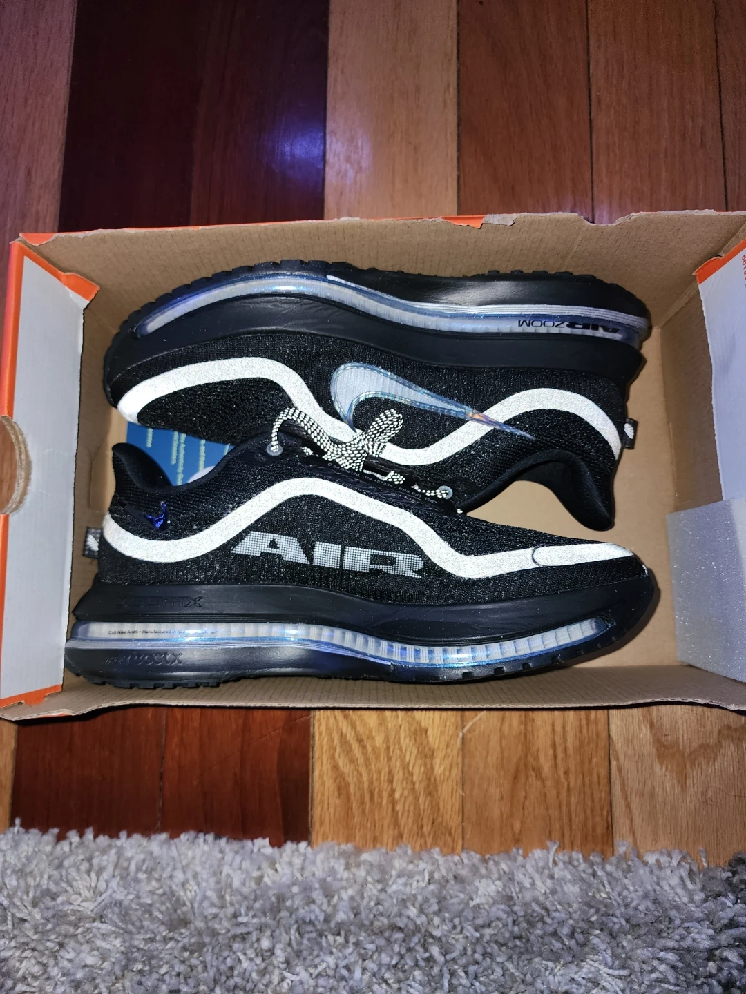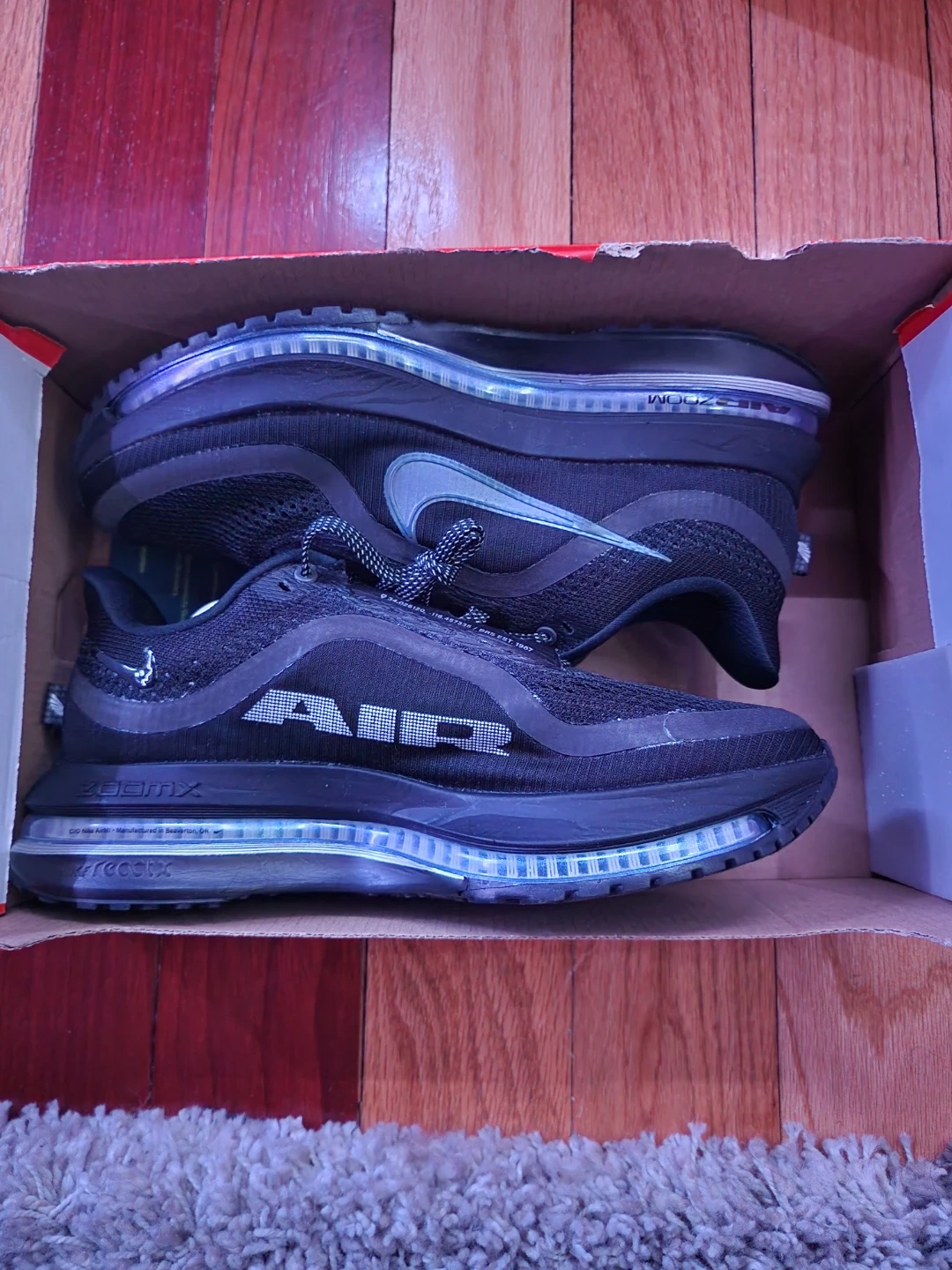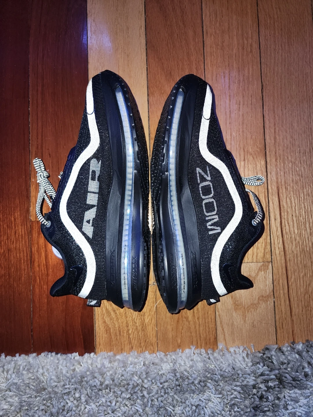 Men's Nike Air Zoom running shoes in black. Features mesh upper and visible Air Zoom cushioning. Includes original box. No lid and authenticated.. Brand new. Never used or worn..