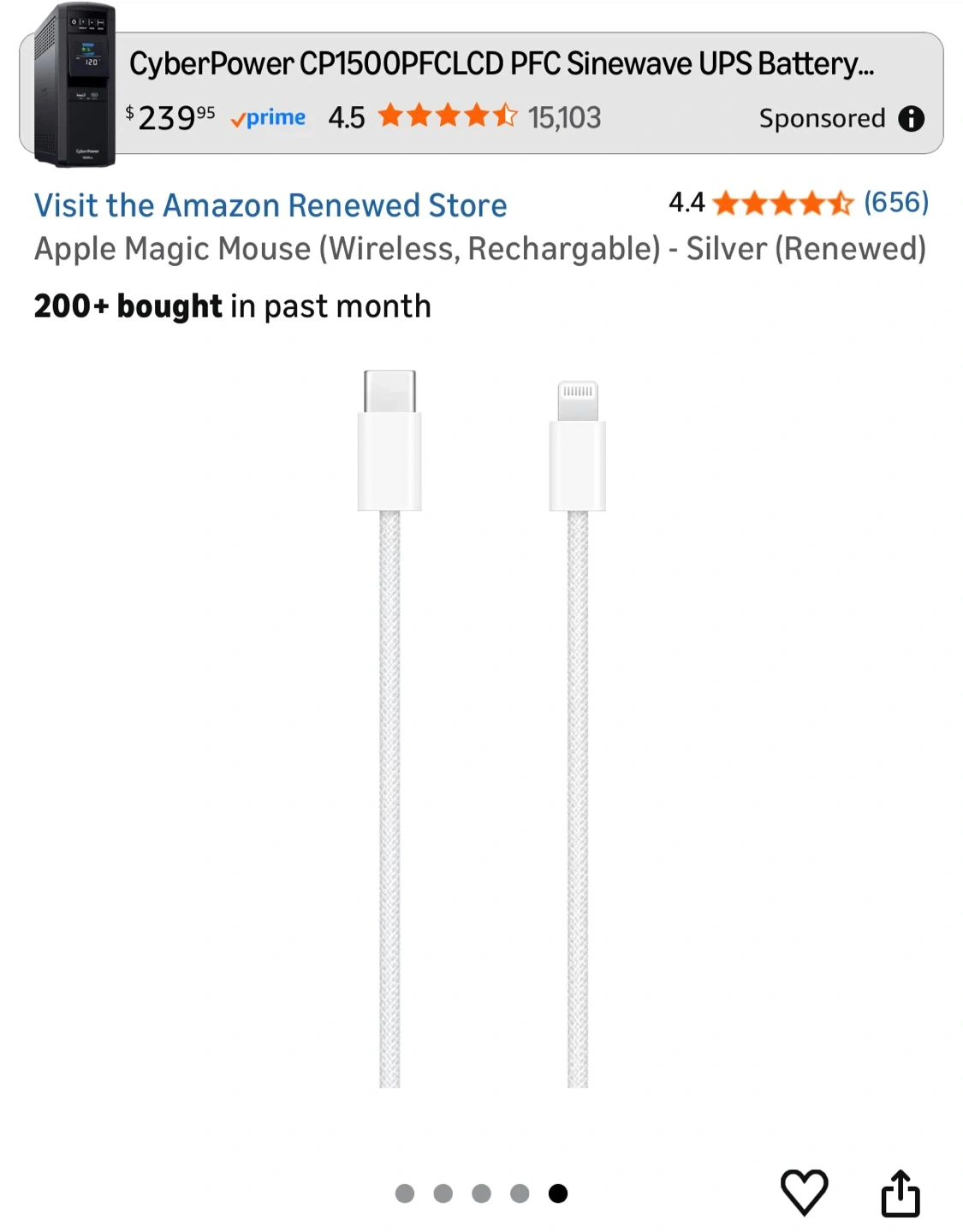 This is a renewed Apple Magic Mouse in silver. It's wireless and rechargeable. DOES NOT INCLUDE CHARGER! Uses LIGHTNING charger NOT usb-C