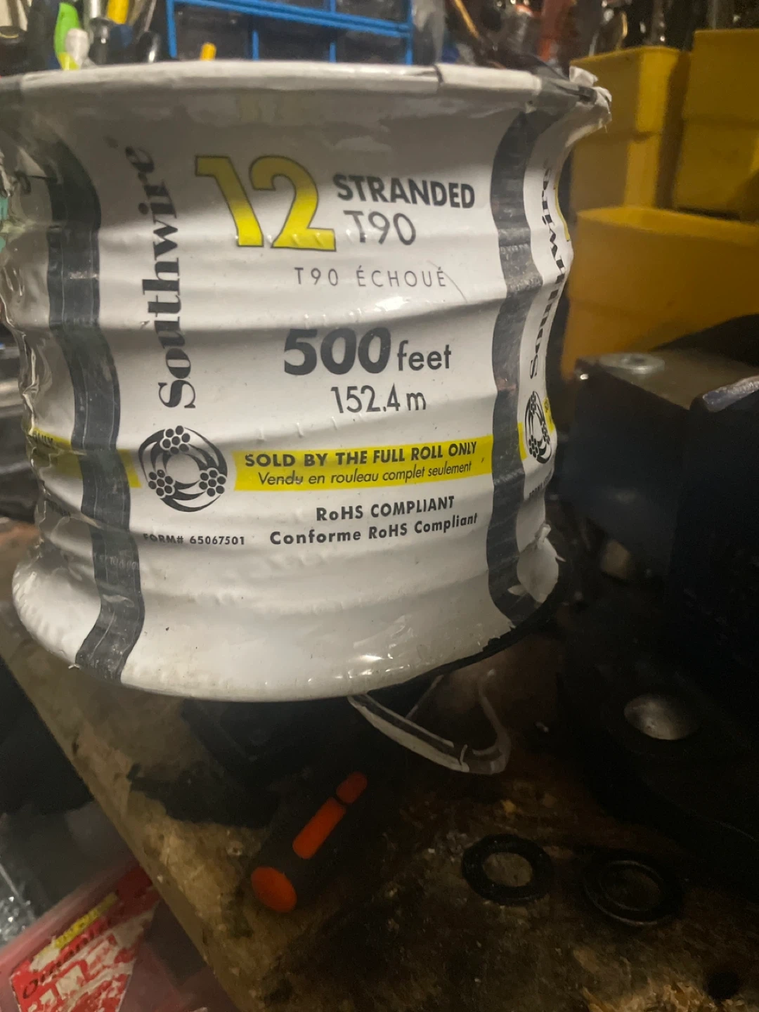 Southwire 12 gauge stranded T90 wire. 500 feet total length. It's RoHS compliant. and brand new. don’t bother lowballing.