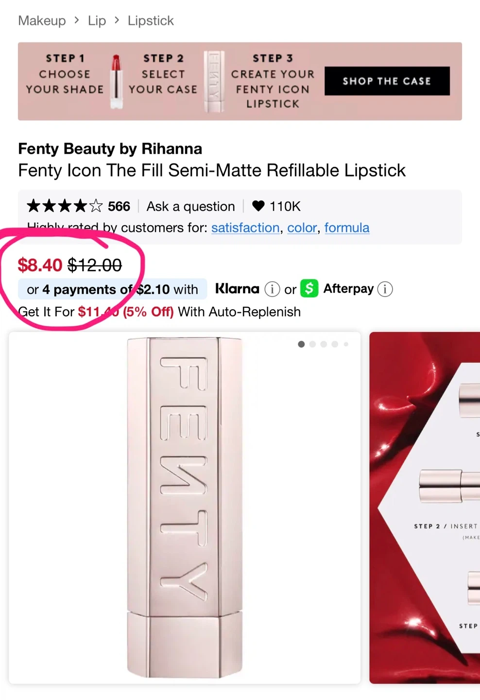 Selling Fenty Beauty lipstick and Soft'Lit Naturally Luminous Longwear Foundation #300. The foundation is 1.08oz. Originally bought lipstick for $12 and foundation for $38.