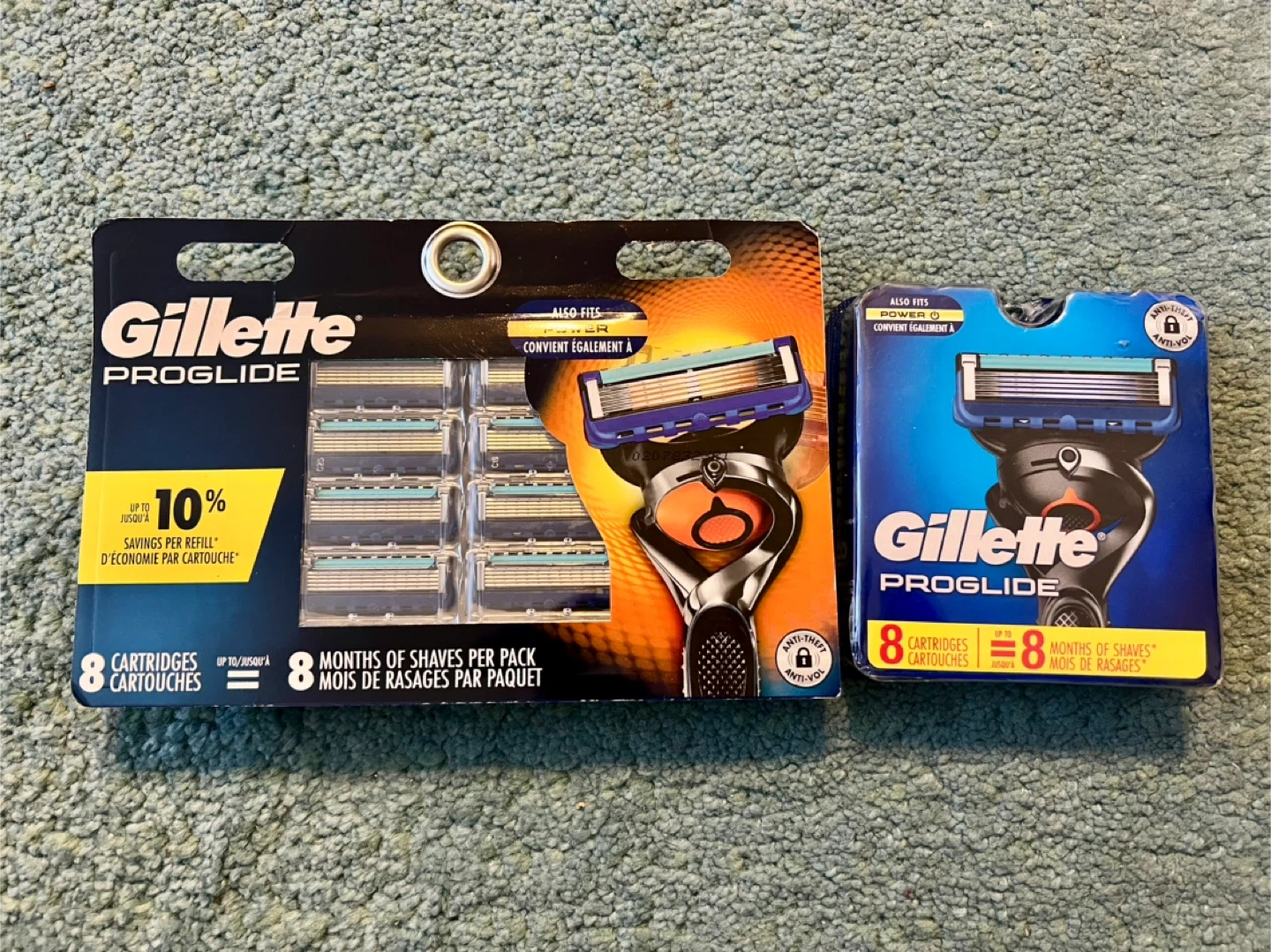 This set includes a Gillette Proglide razor handle and 8 refill cartridges. The cartridges feature enhanced lubrication and 5 precision blades.