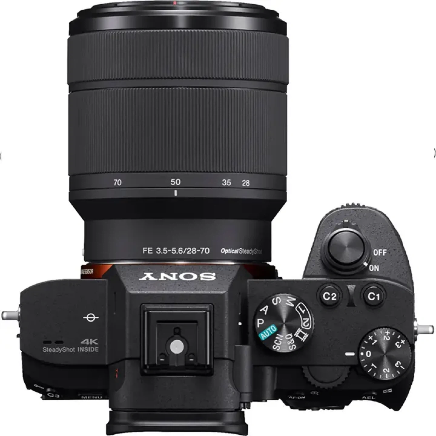 This is a Sony Alpha a7 III mirrorless camera. It comes with a FE 3.5-5.6/28-70 OSS lens. The camera features a 35mm full-frame CMOS image sensor and 4K SteadyShot inside. It has optical steady shot stabilization.