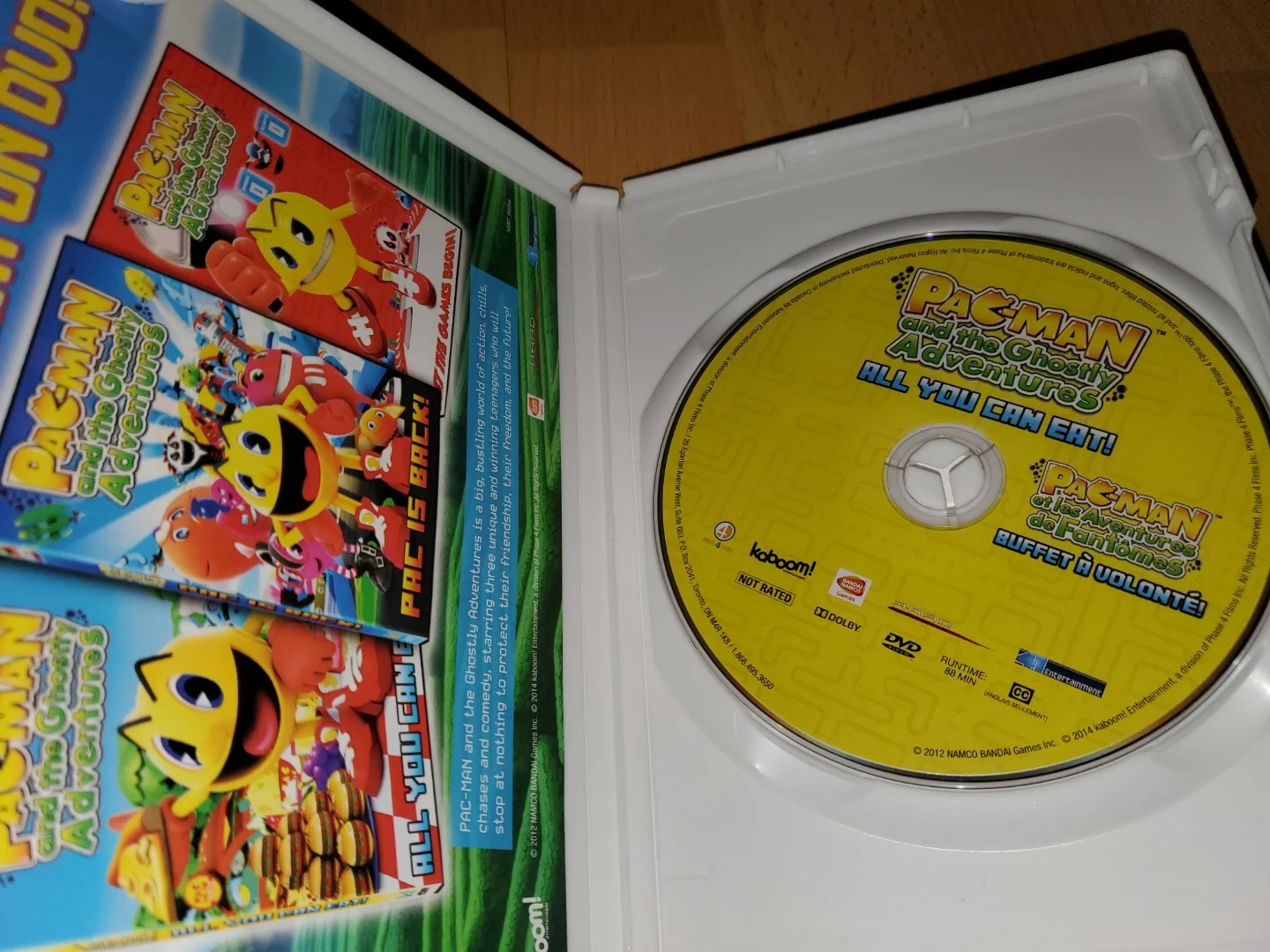 This DVD features Pac-Man and the Ghostly Adventures. It includes 4 episodes. The disc is widescreen and runs for 88 minutes.