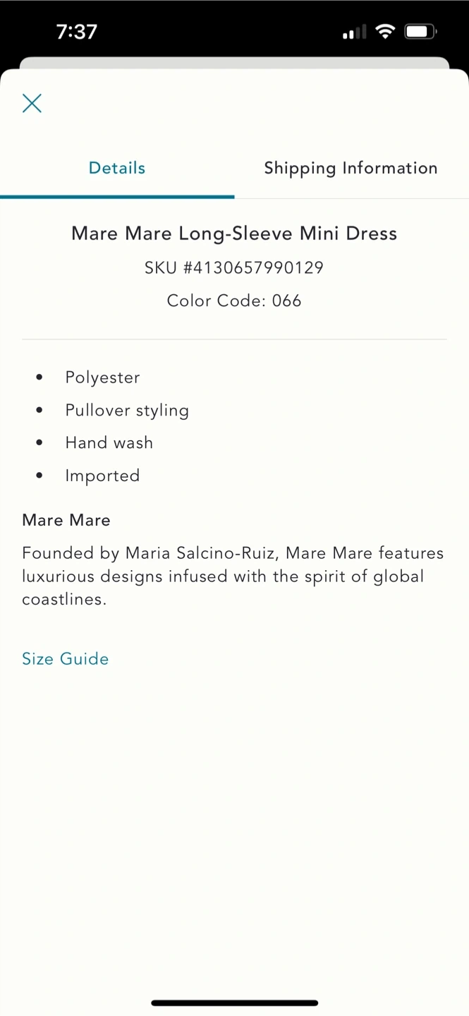 BNWT Anthropologie Mare Mare Long Sleeve Dress XXS (fits XS)