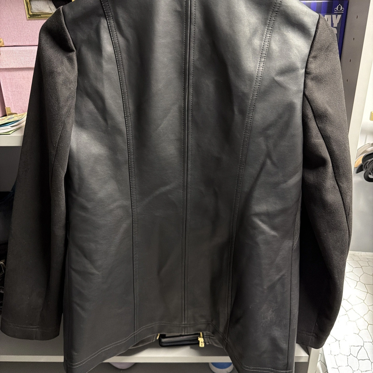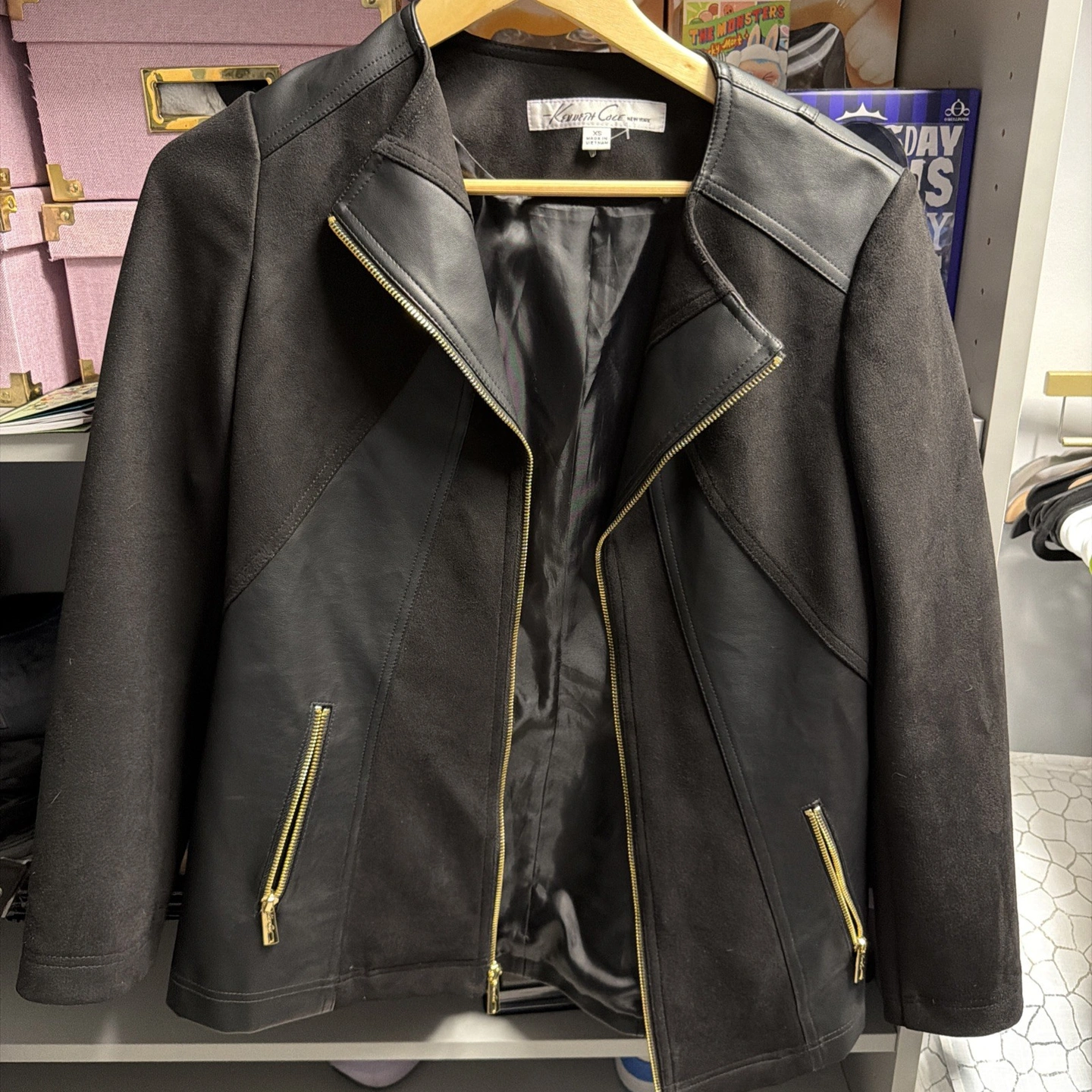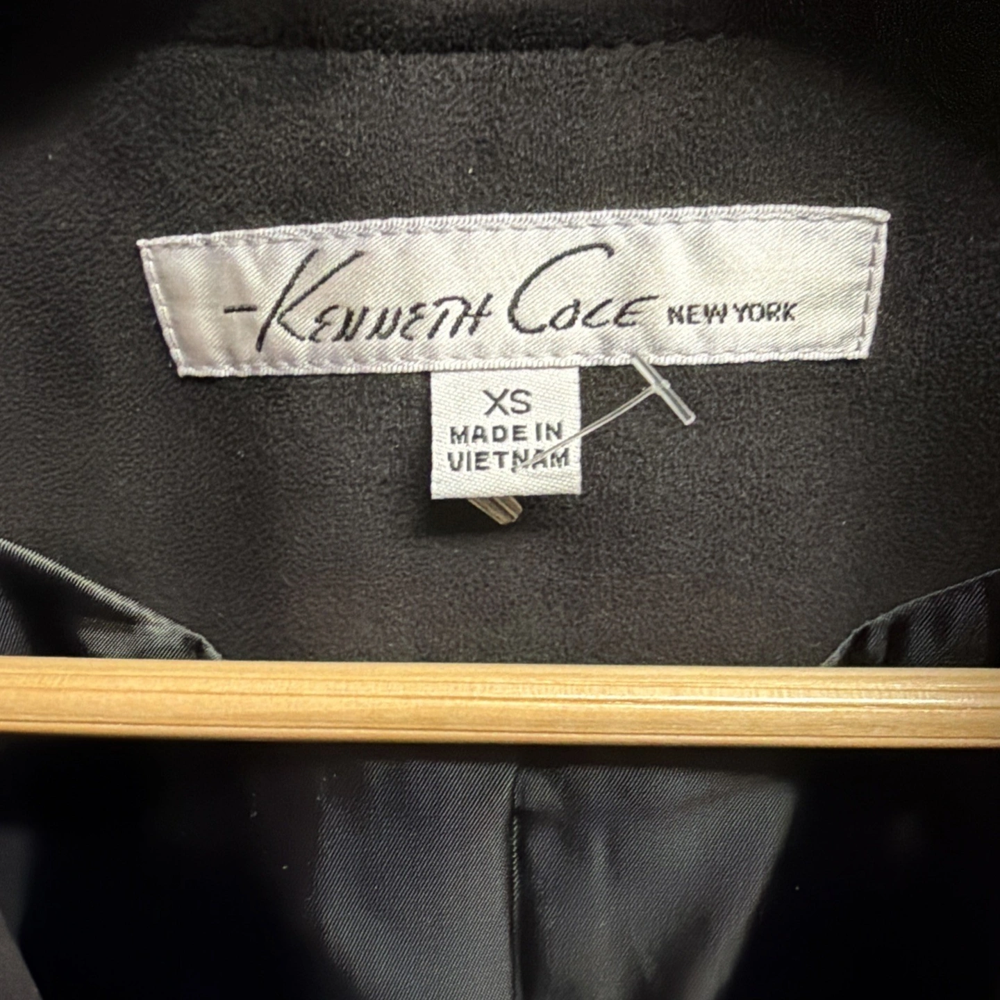 Women's Kenneth Cole jacket in size XS. Features a faux leather and faux suede lining. It has a zip closure and pockets. Suitable for business, casual, or travel occasions. Machine washable.