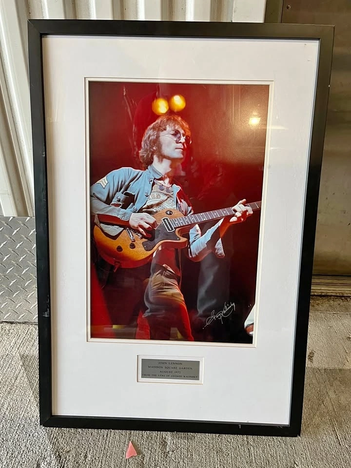 This image depicts John Lennon performing at Madison Square Garden during the One to One benefit concerts on August 30, 1972. Captured by George Kalinsky, the venue's official photographer, this event marked Lennon's last full-length concert appearances.