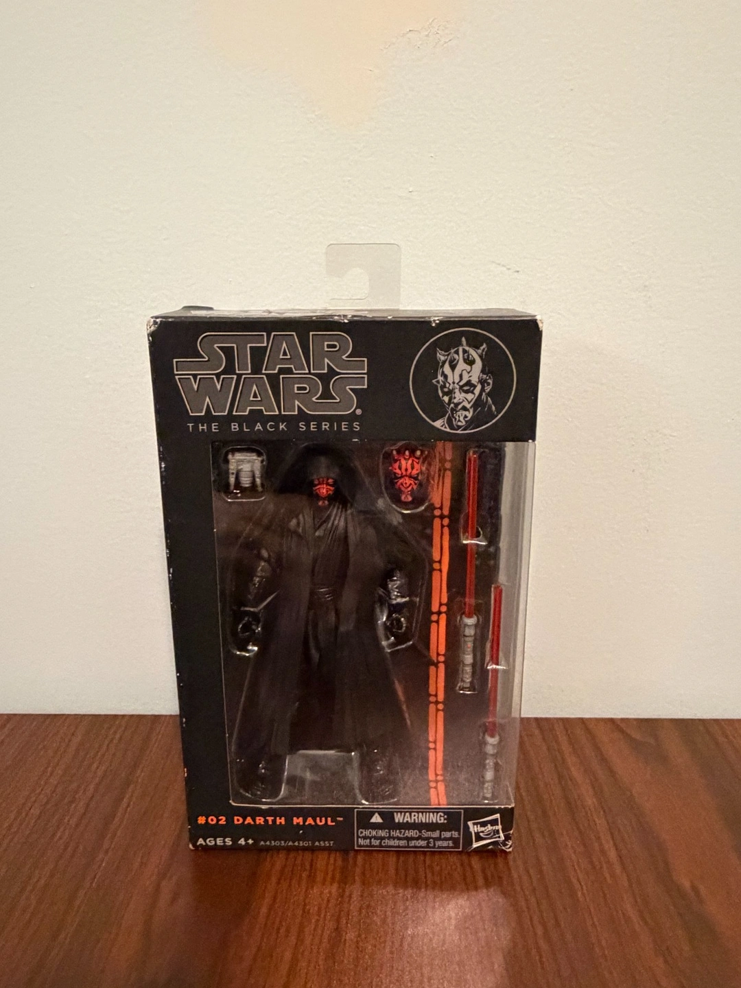 Action figure from Star Wars: Episode I – The Phantom Menace. Features Darth Maul, 6-inch scale, boxed. Brand: Hasbro, Year: 2013. Let me know if you're interested!