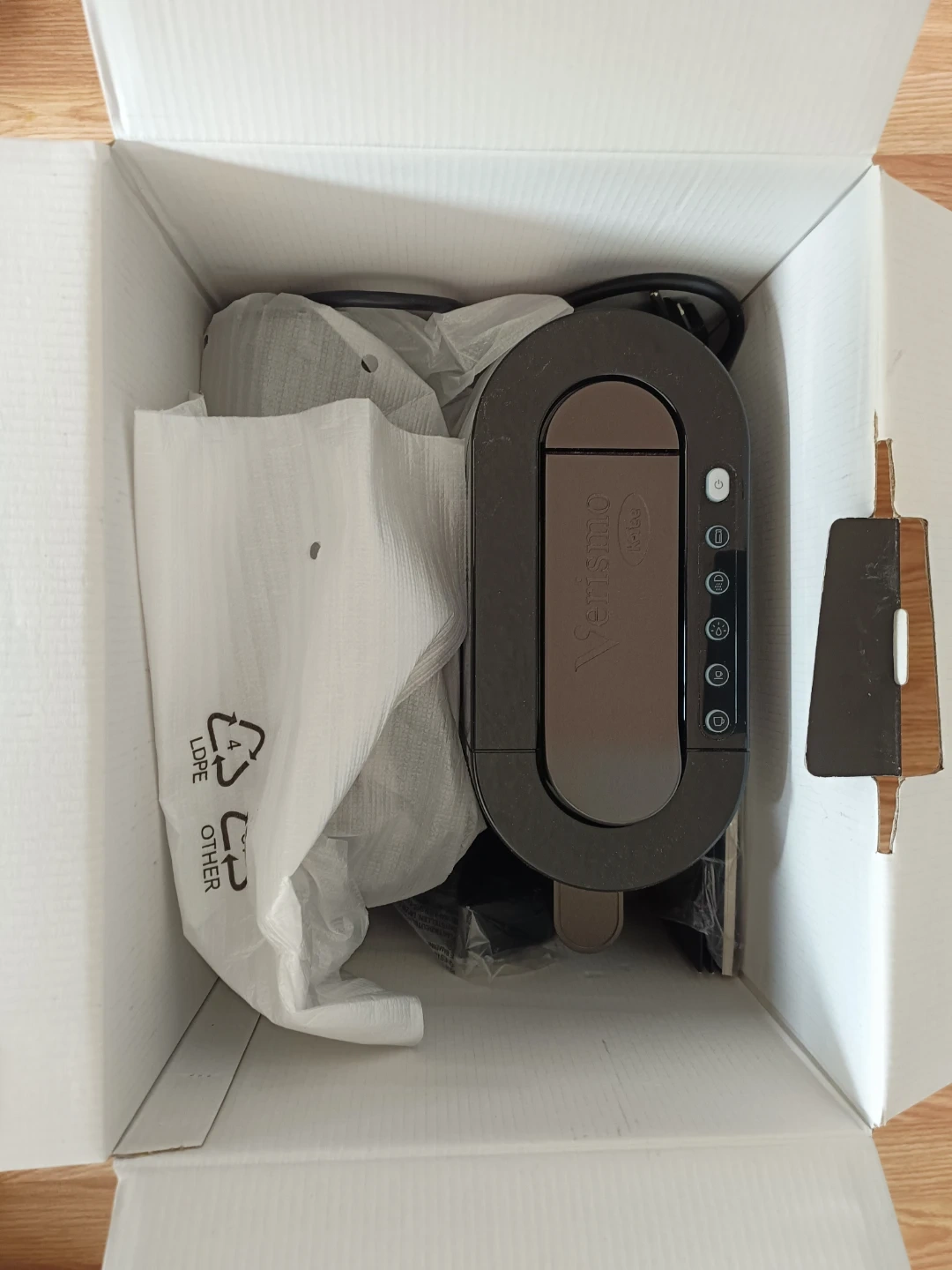Six buttons for: on/off, milk, cleaning, hot water, espresso and brewed coffee.