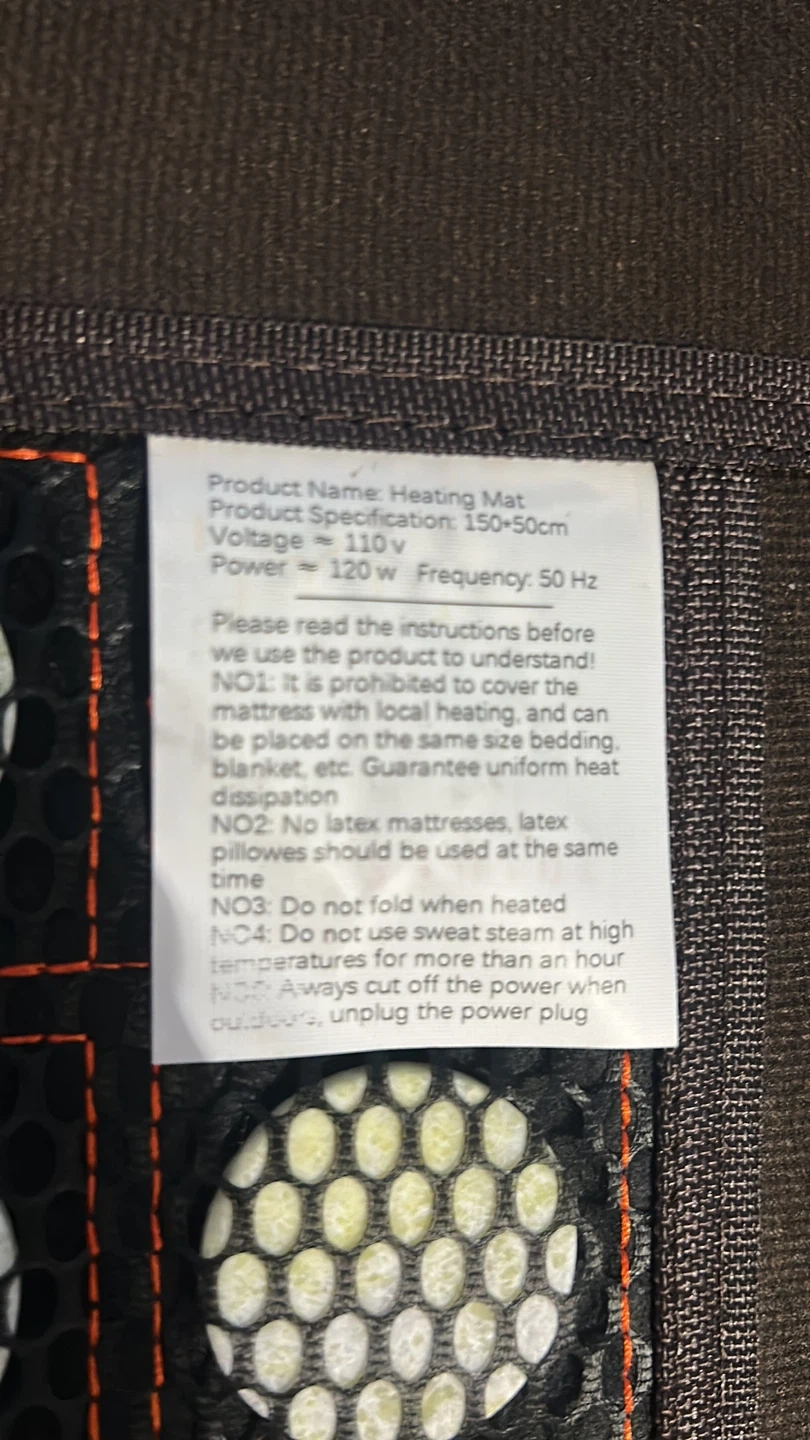 This is a heating mat measuring 150x50cm. It operates at 110V and consumes 120W of power. It's designed for uniform heat dissipation.